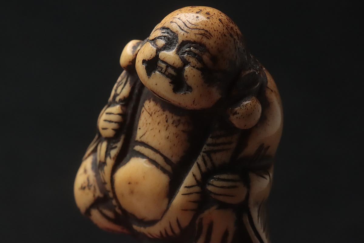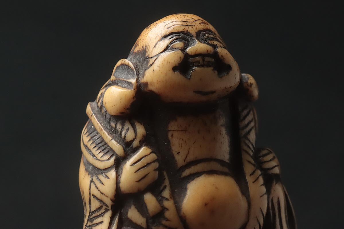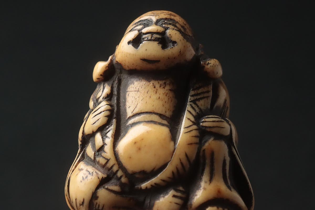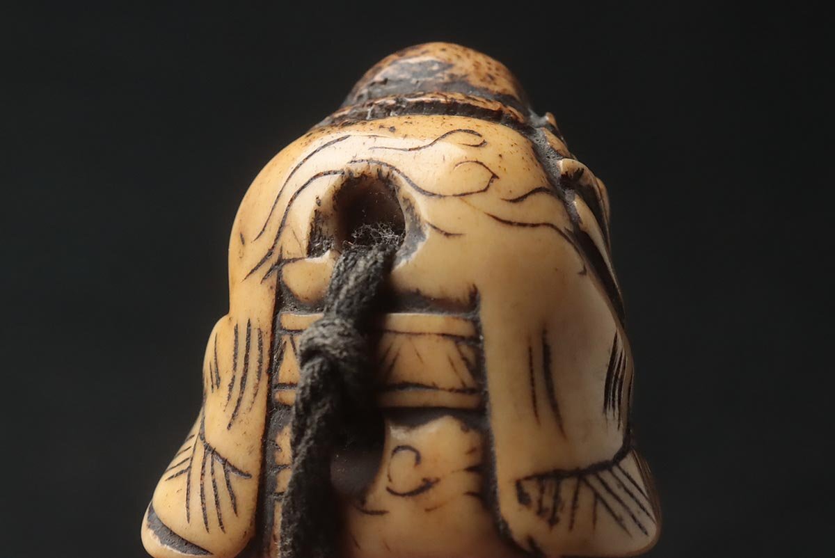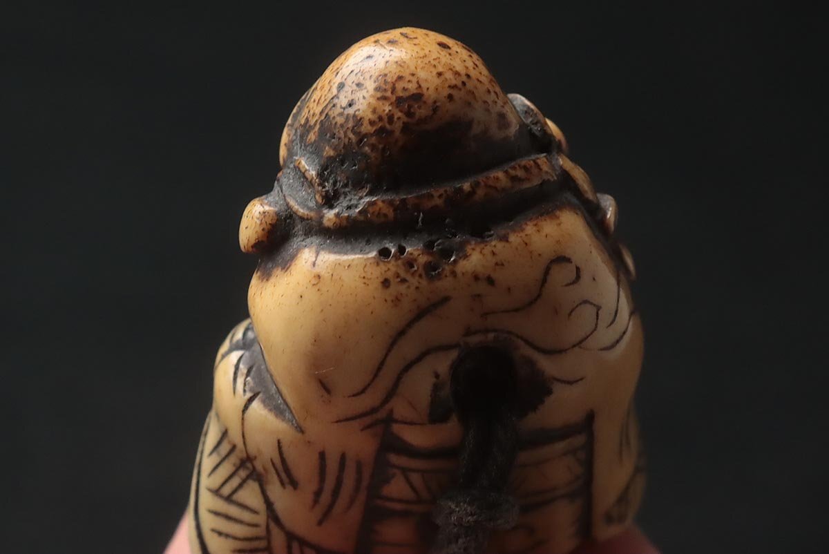 | ◆ 時代提げ物 古骨布袋根付 革製 腰下巾着・古革腰下巾着 古根付 和装小物 腰提げ 装飾具 古美術 ◆