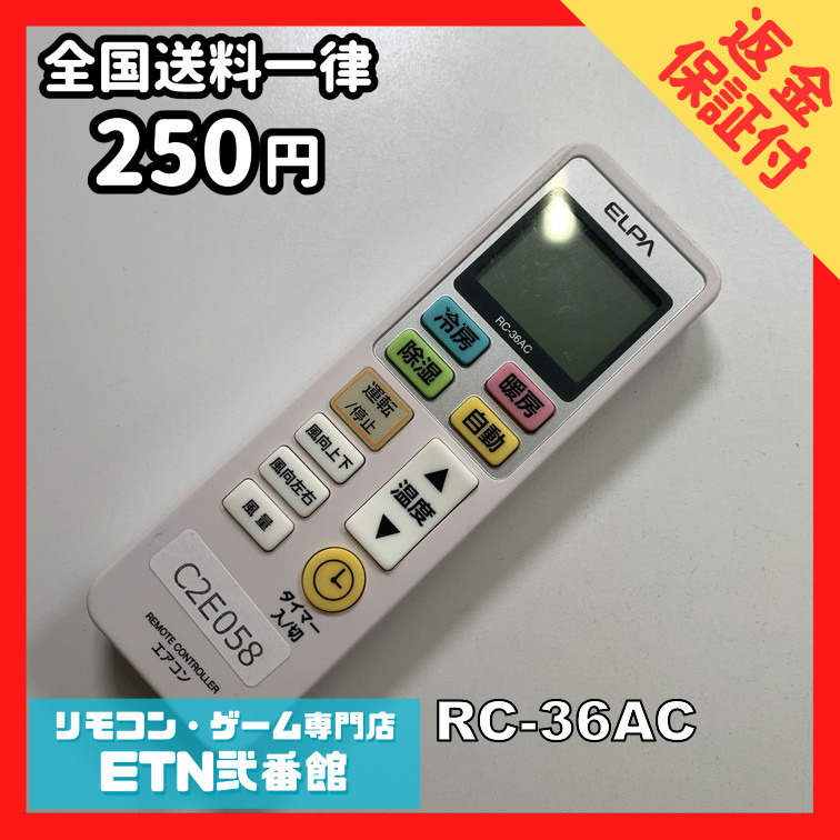 C2E058 【送料250円】エアコン リモコン / ELPA エルパ 汎用 RC-36AC 冷房 暖房 動作確認済み★即発送★