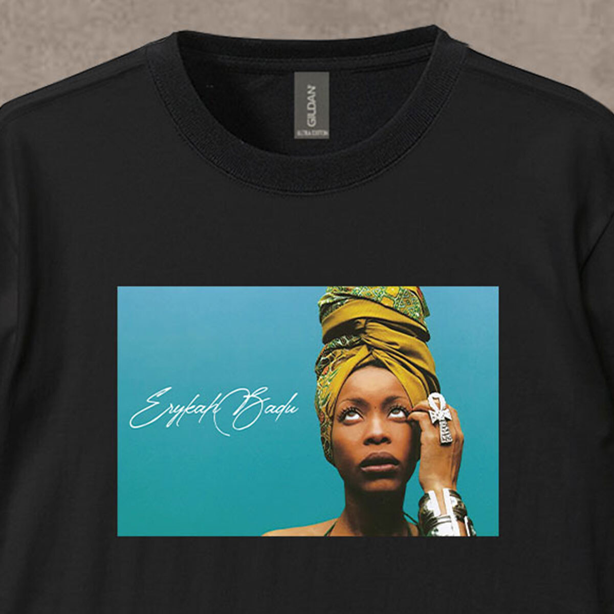 エリカ・バドゥ Erykah Badu フォトプリント リブ付き 長袖 Tシャツ ロンT キレイめ カジュアル 半袖 6.0oz コットン100% ユニセックス XL