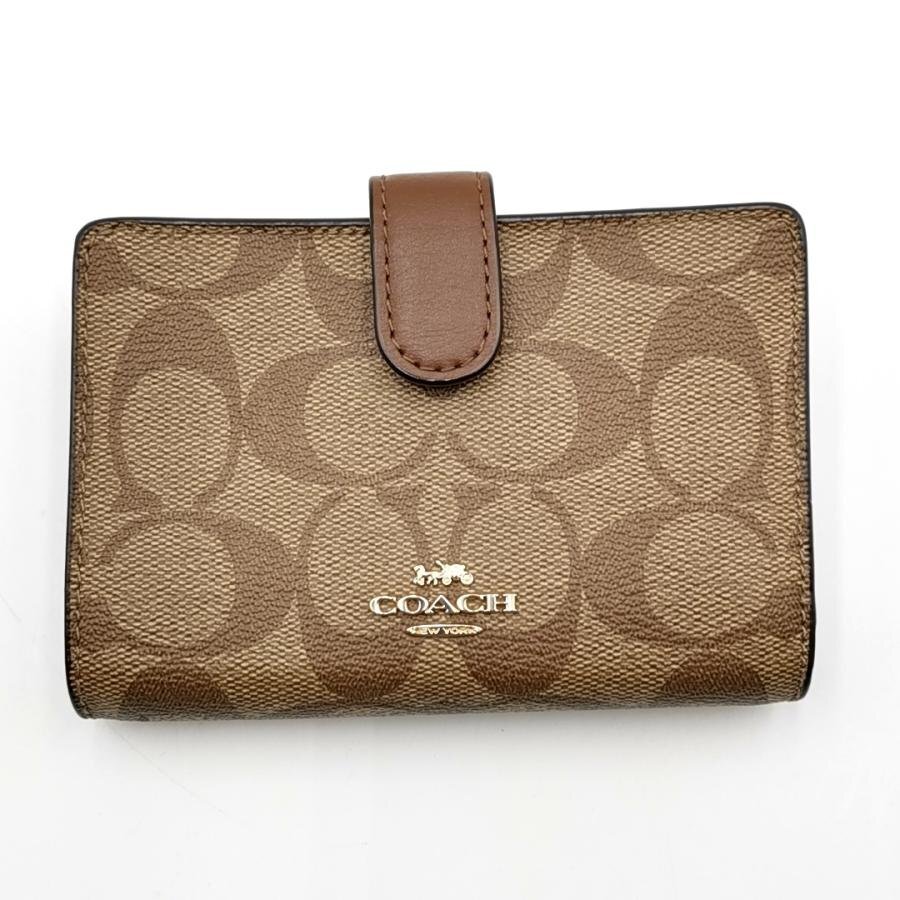 送料無料 美品 コーチ COACH 財布 二つ折り ミディアムウォレット シグネチャー F23553 L字ファスナー レディース