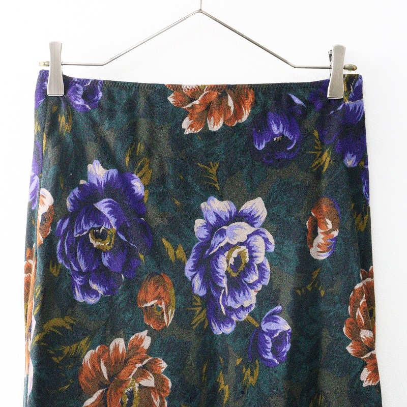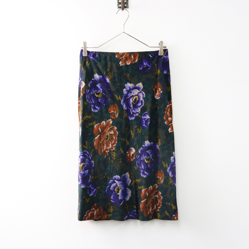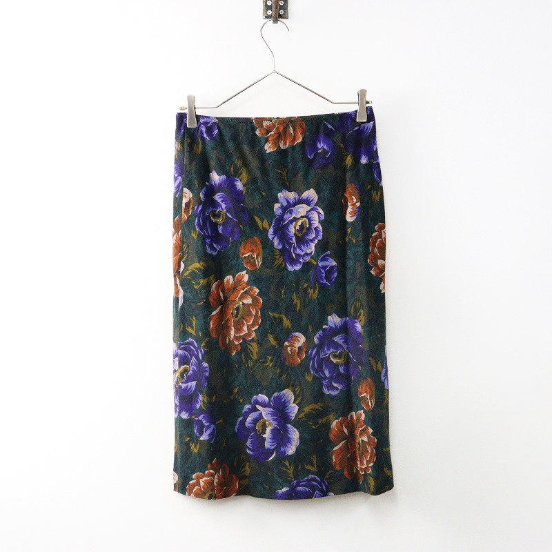 タバサ TABASA フラワープリント タイトスカート 36|グリーン ボトムス ミドル丈 花柄 【2400014616323】