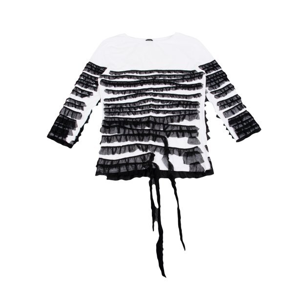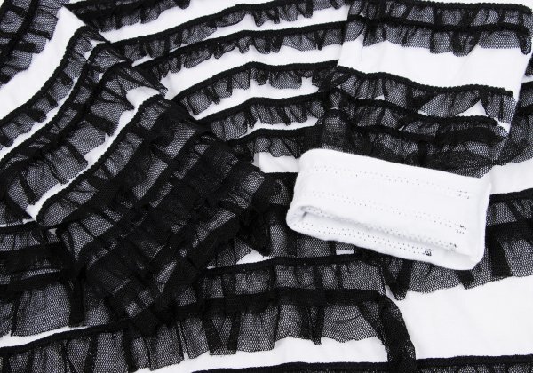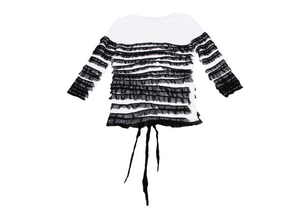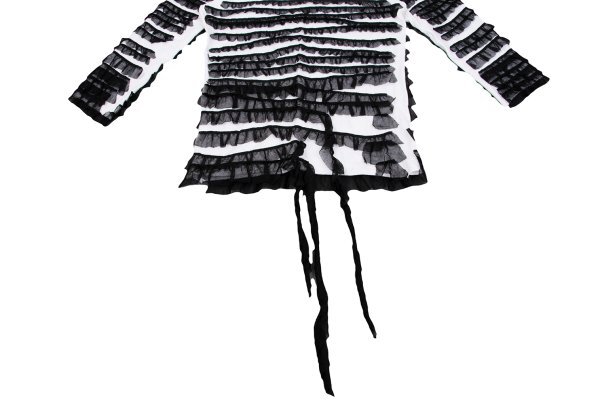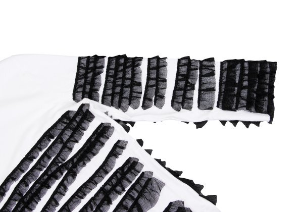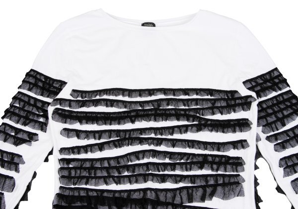 ジャンポールゴルチエ オムJean Paul GAULTIER HOMME コットンポリメッシュフリルテーピングカットソー 白黒48 |