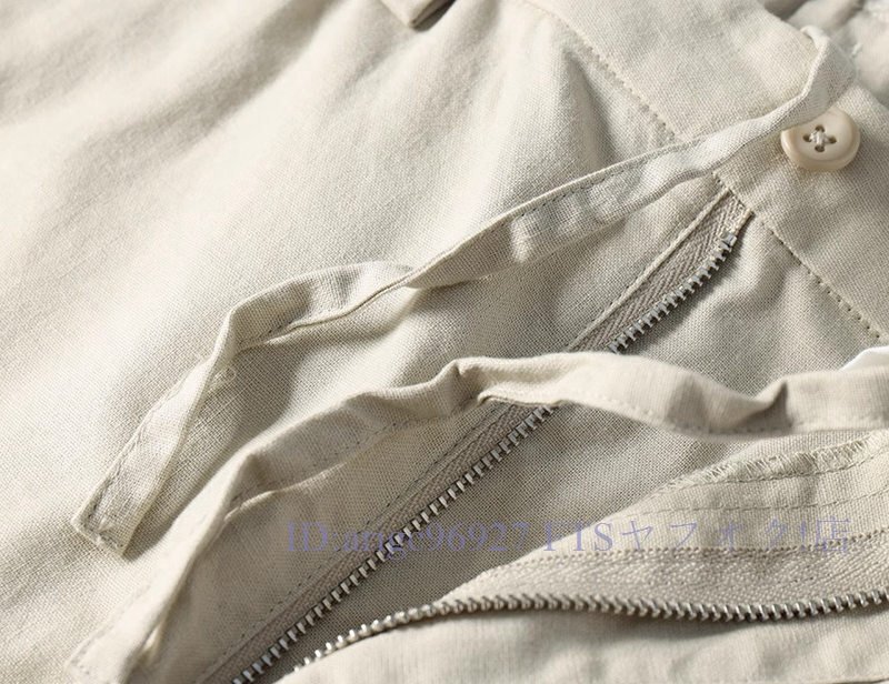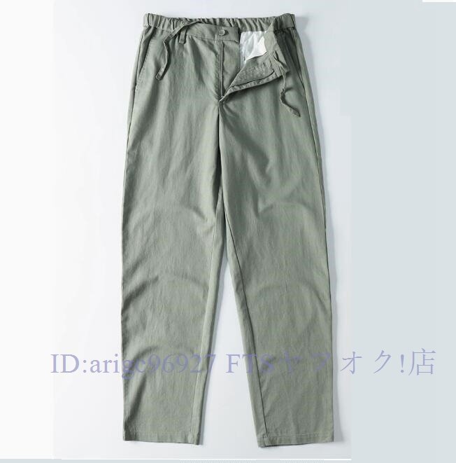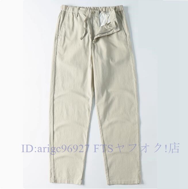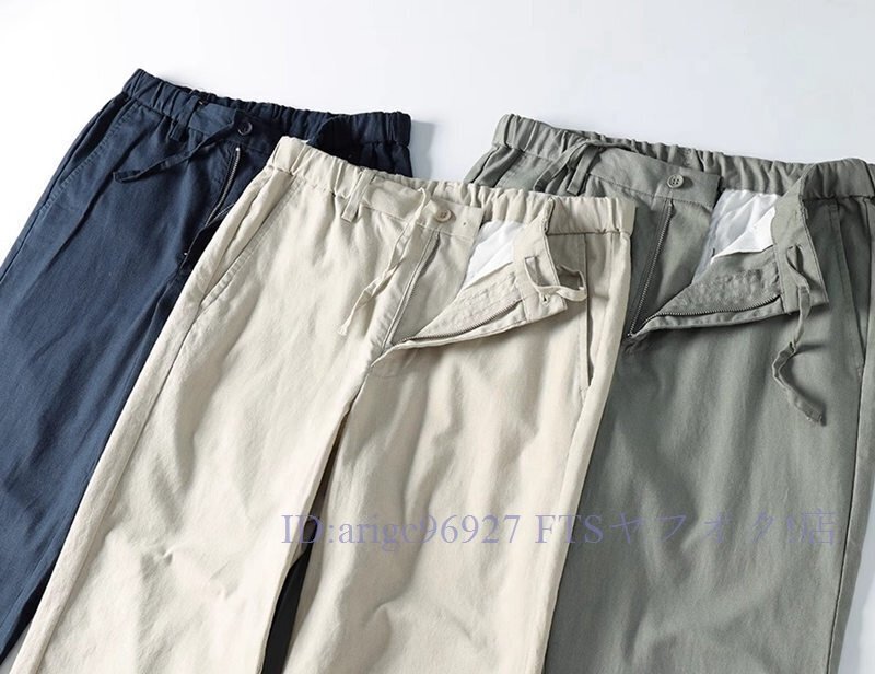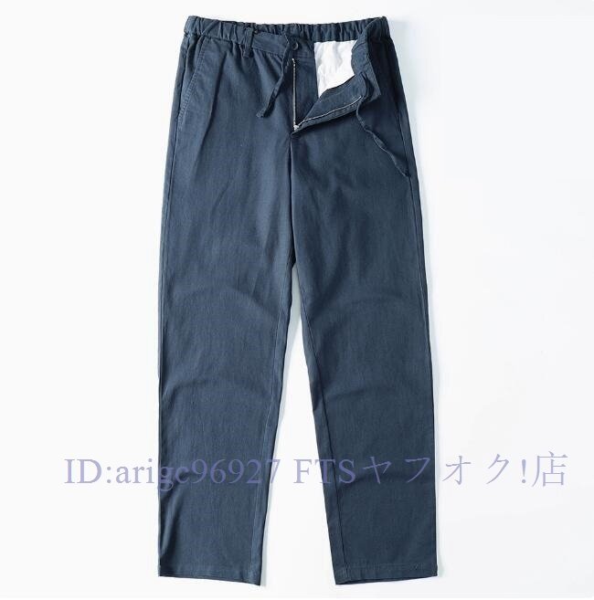 ★新品3XL 綿麻混 イージーパンツ メンズ サマー スラックス ズボン 薄手 通気性 春夏 テーパード ウエストゴム ロングパンツ/ネイビー