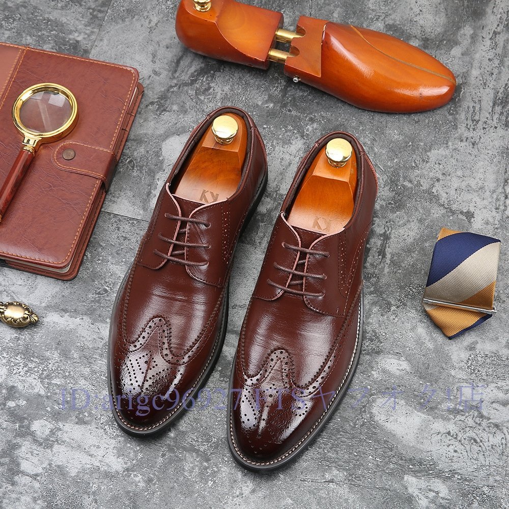 ★新品ビジネスシューズ サドルシューズ オックスフォード メンズ メンズシューズ PU革 防滑ソール 仕事 通勤学 快適 ブラウン26cm
