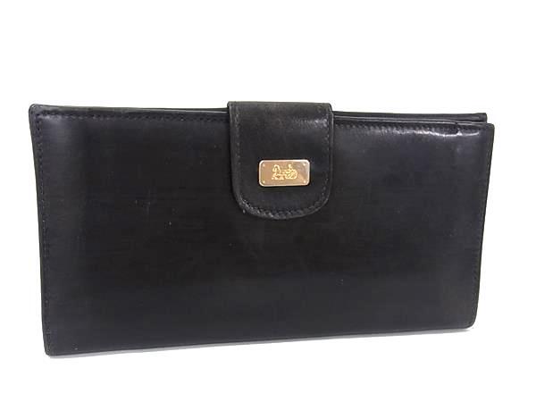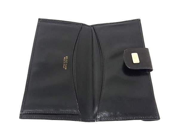 1円 CELINE セリーヌ ヴィンテージ 馬車金具 レザー Wホック 二つ折り 長財布 ウォレット 小銭入れ 札入れ メンズ ブラック系 GA5166