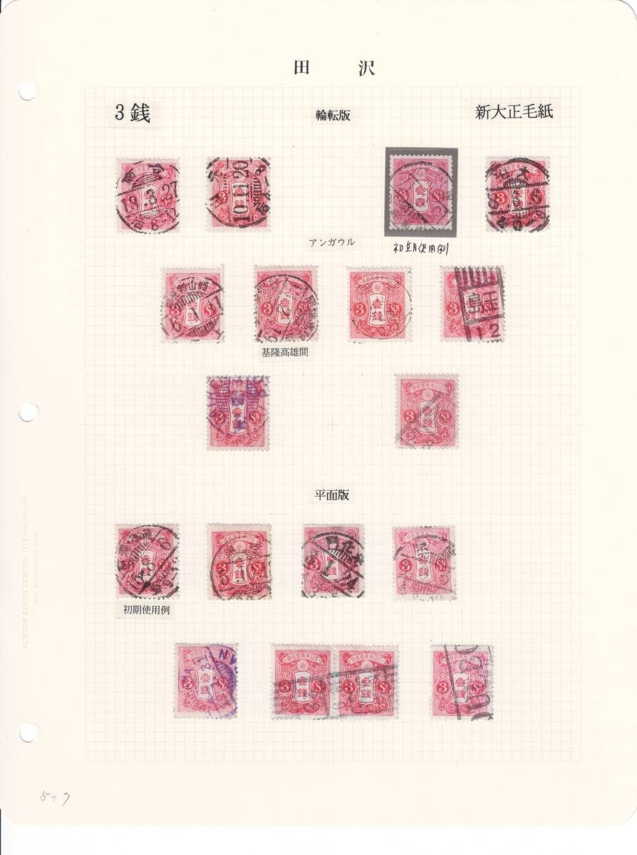 新大正毛紙 3銭 使用例リーフ 初期使用例 など