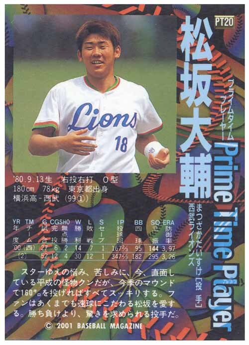 即決! 2001 BBM プライムタイムプレイヤー 松坂 大輔 PT20 挿入カード