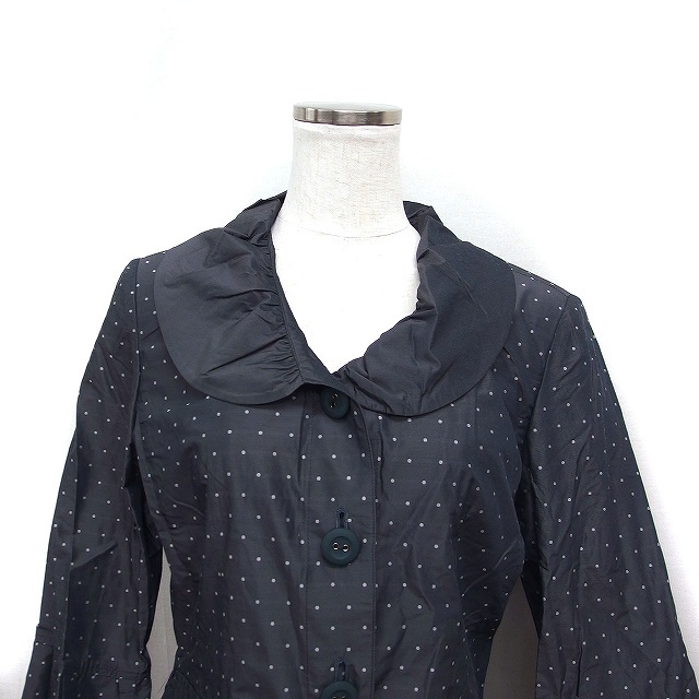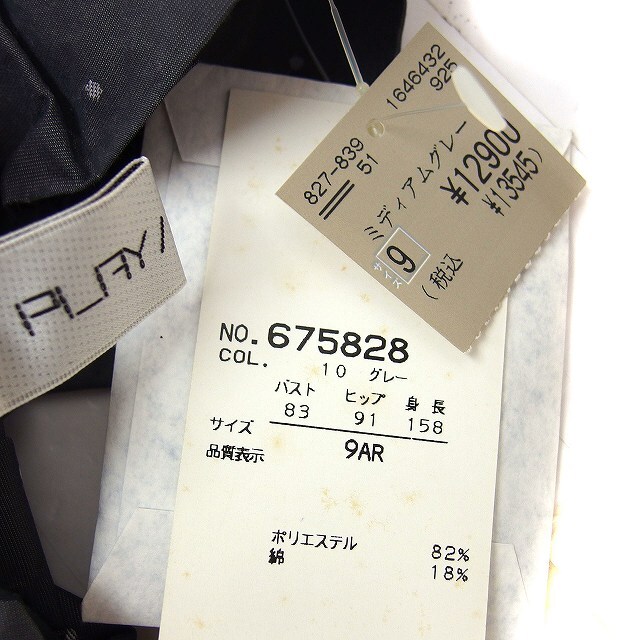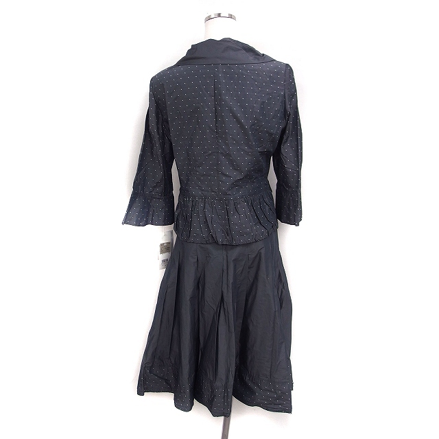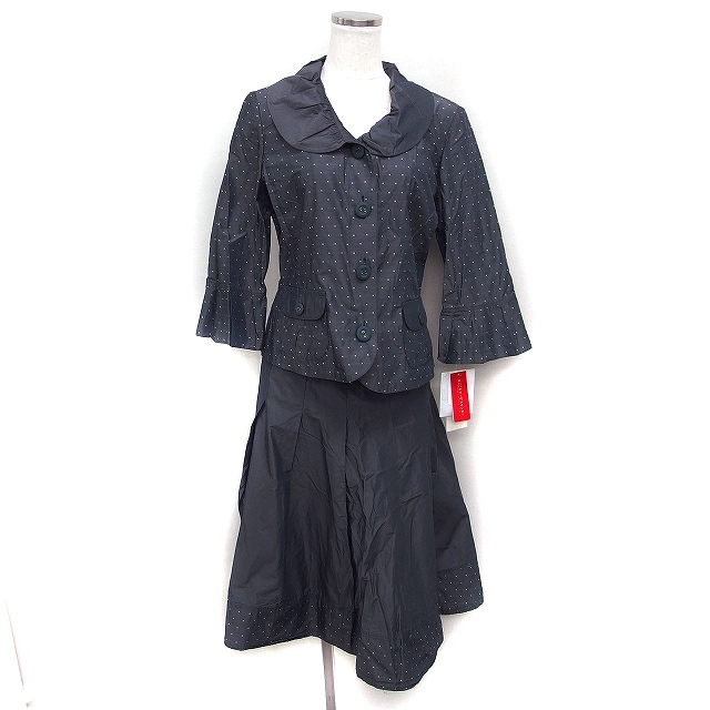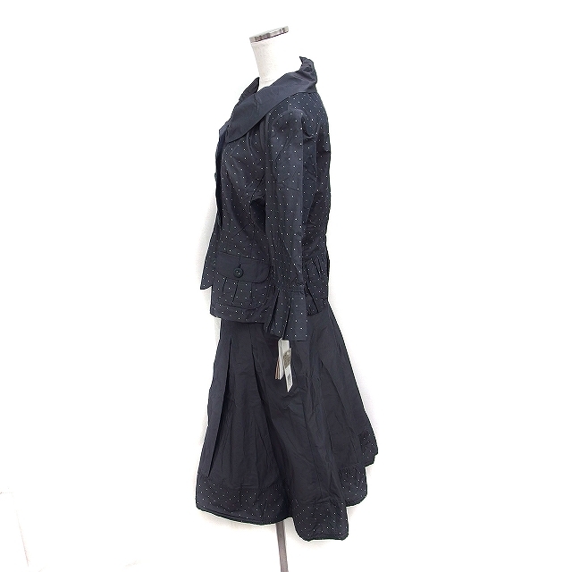 未使用品 PLAY/MATOH タグ付き スカートスーツ 丸衿 ジャケット & ボックスプリーツ スカート ドット柄 9 チャコール /FT2 レディース