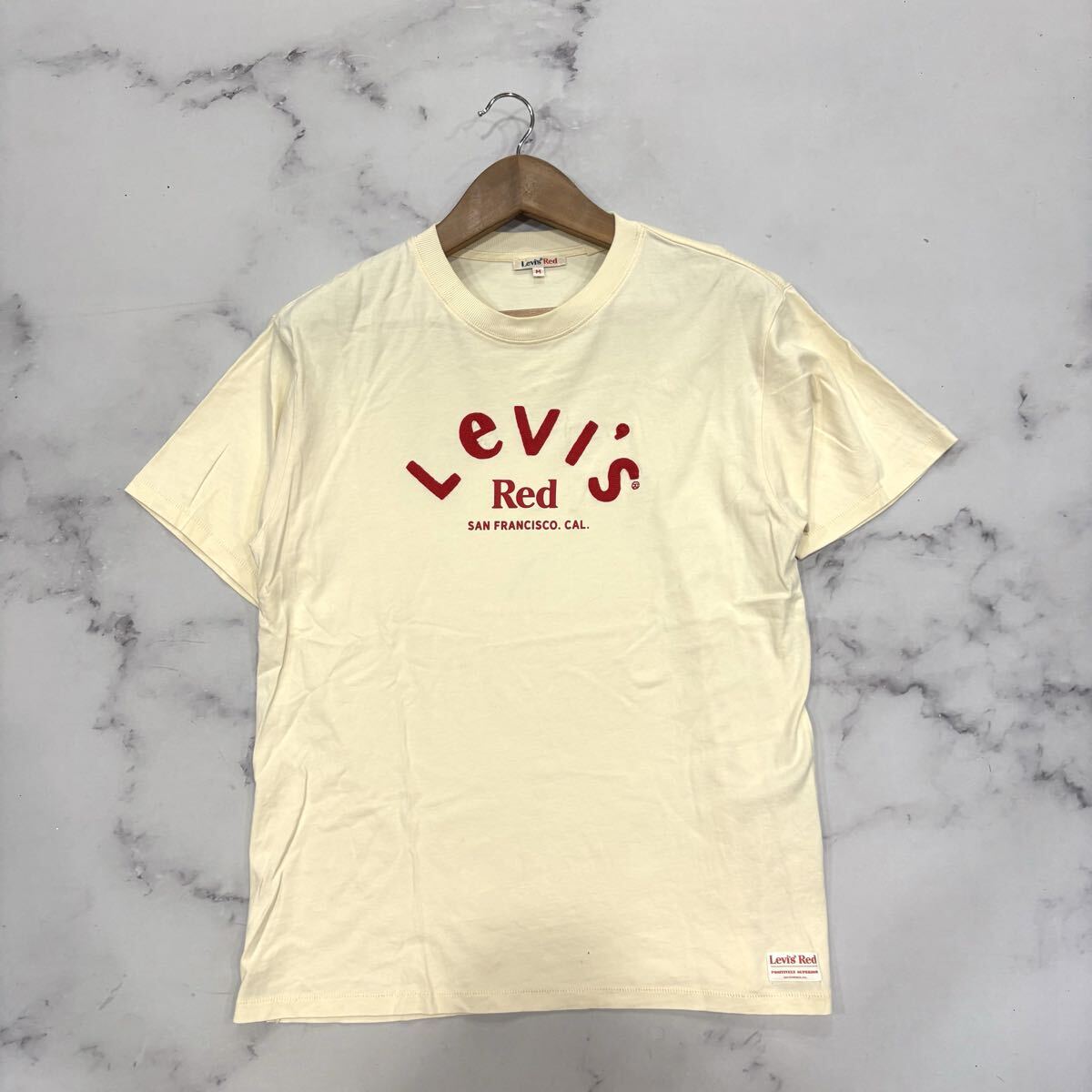 Y ■ 着心地抜群!! '人気モデル' LEVI'S RED リーバイス 半袖 ロゴプリント Tシャツ カットソー SIZE:M メンズ トップス 古着 ベージュ系