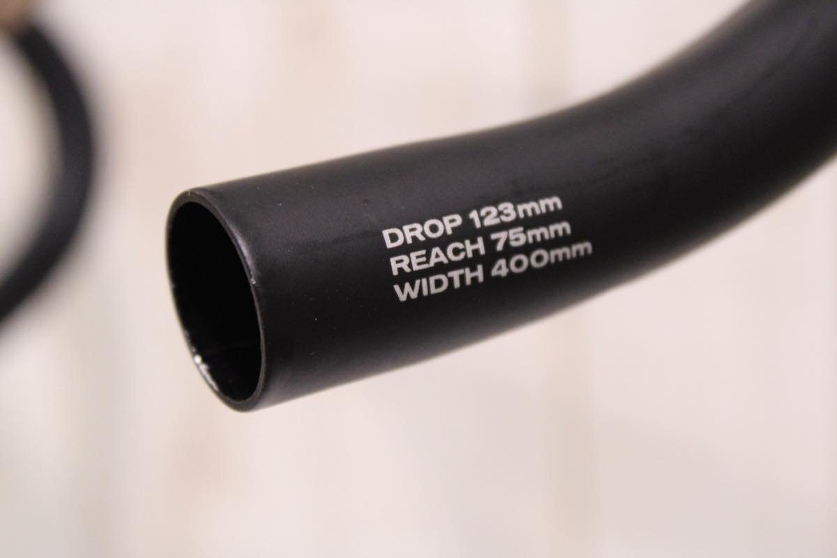 仕様 | クランプ径:Φ31.8mm 計測重量(掲載写真状態): 289g メーカーサイズ: ハンドル幅 ブラケット芯-芯: 400mm エンド芯-芯: 400mm ドロップ: 123mm リーチ: 75mm |
