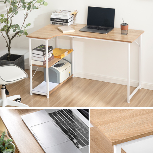 オフィスチェア+パソコンデスク セット 【ナチュラル】パソコンデスク L字 120cm 2段ラック付 デスク木製 ミシン台 書斎机 勉強机
