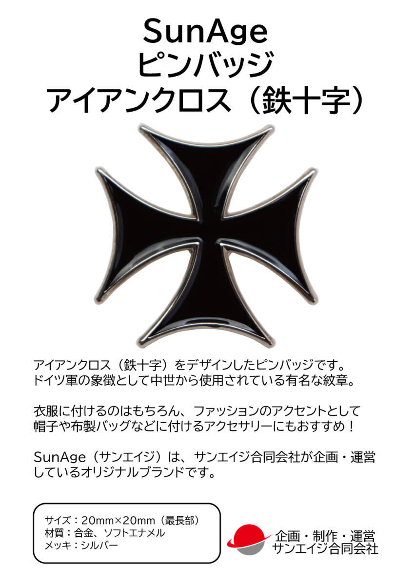 アイアンクロス(鉄十字)をデザインしたピンバッジ(ピンズ)です。