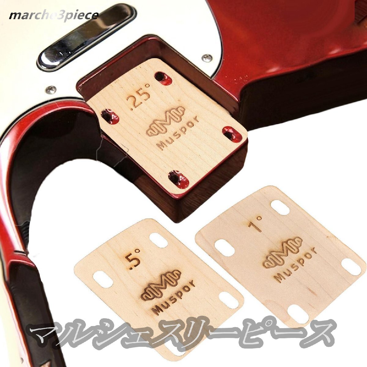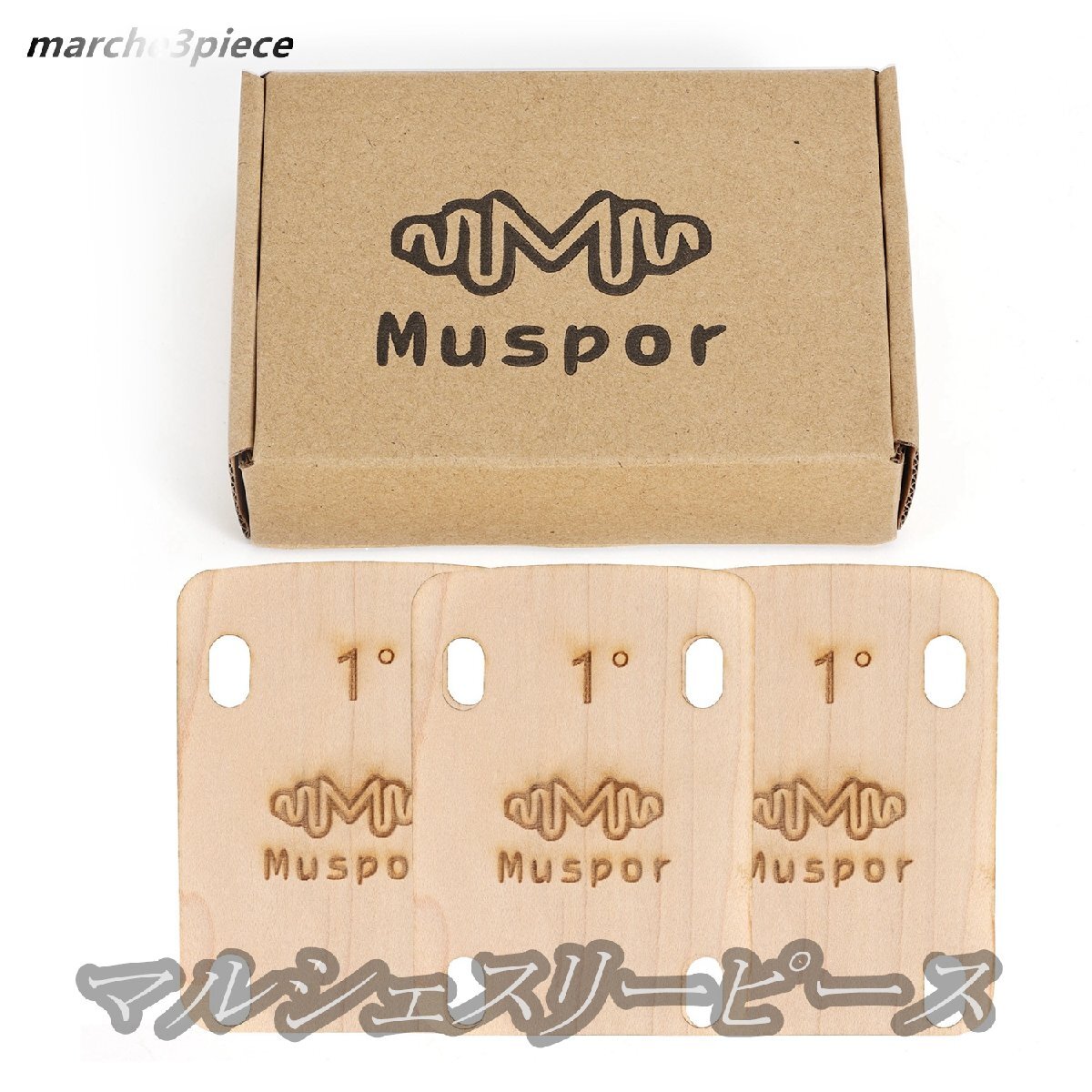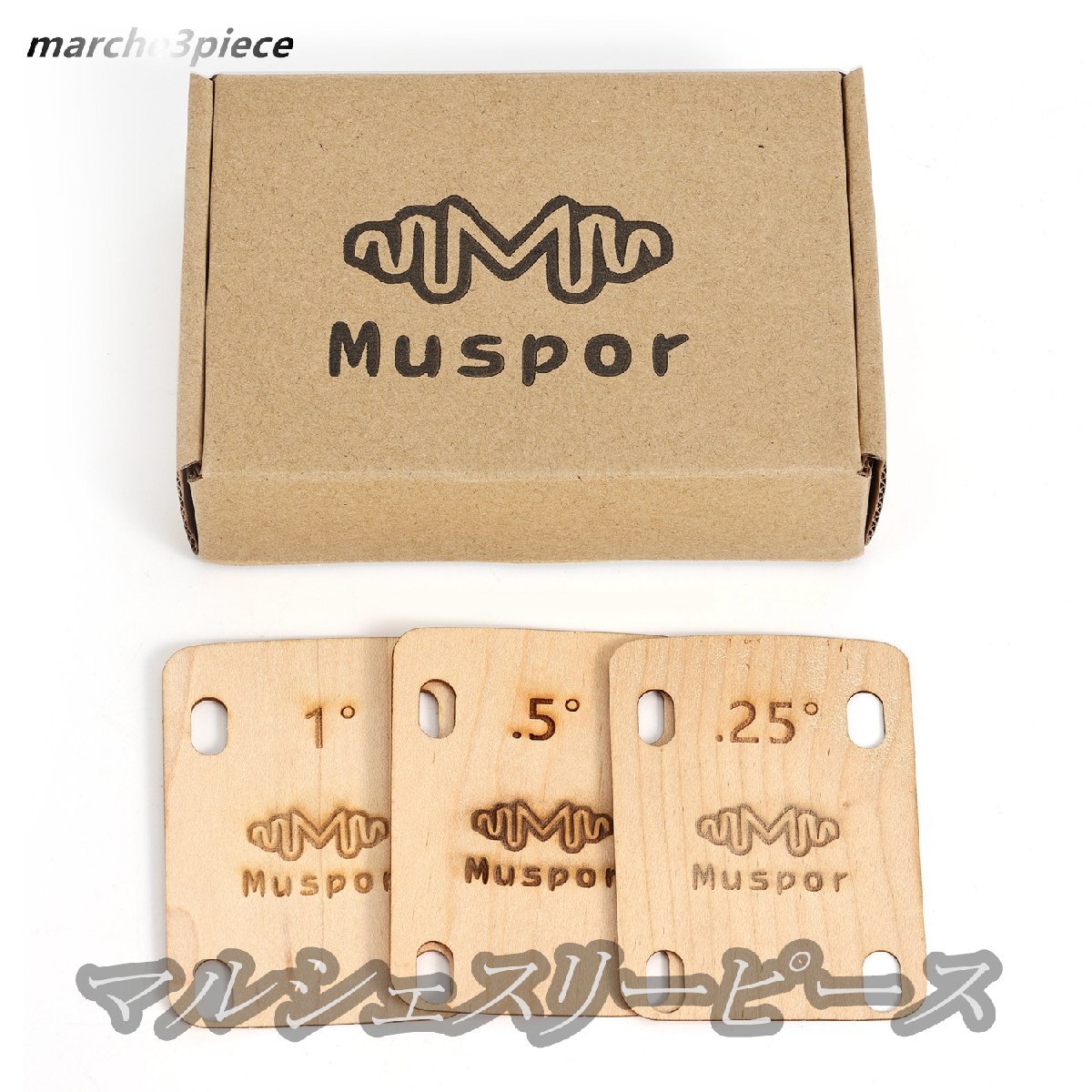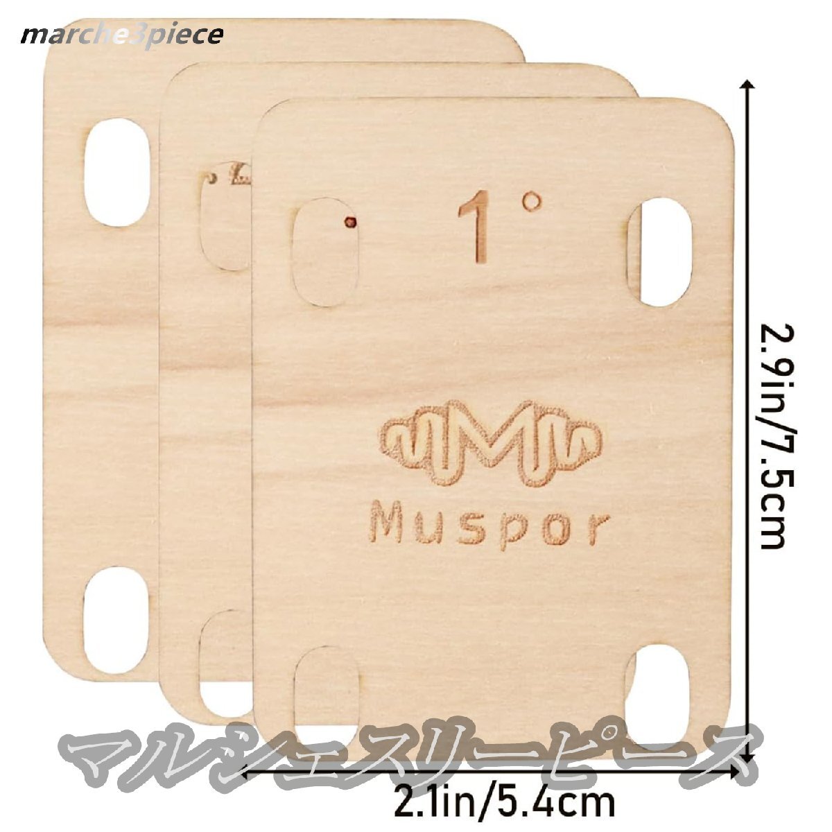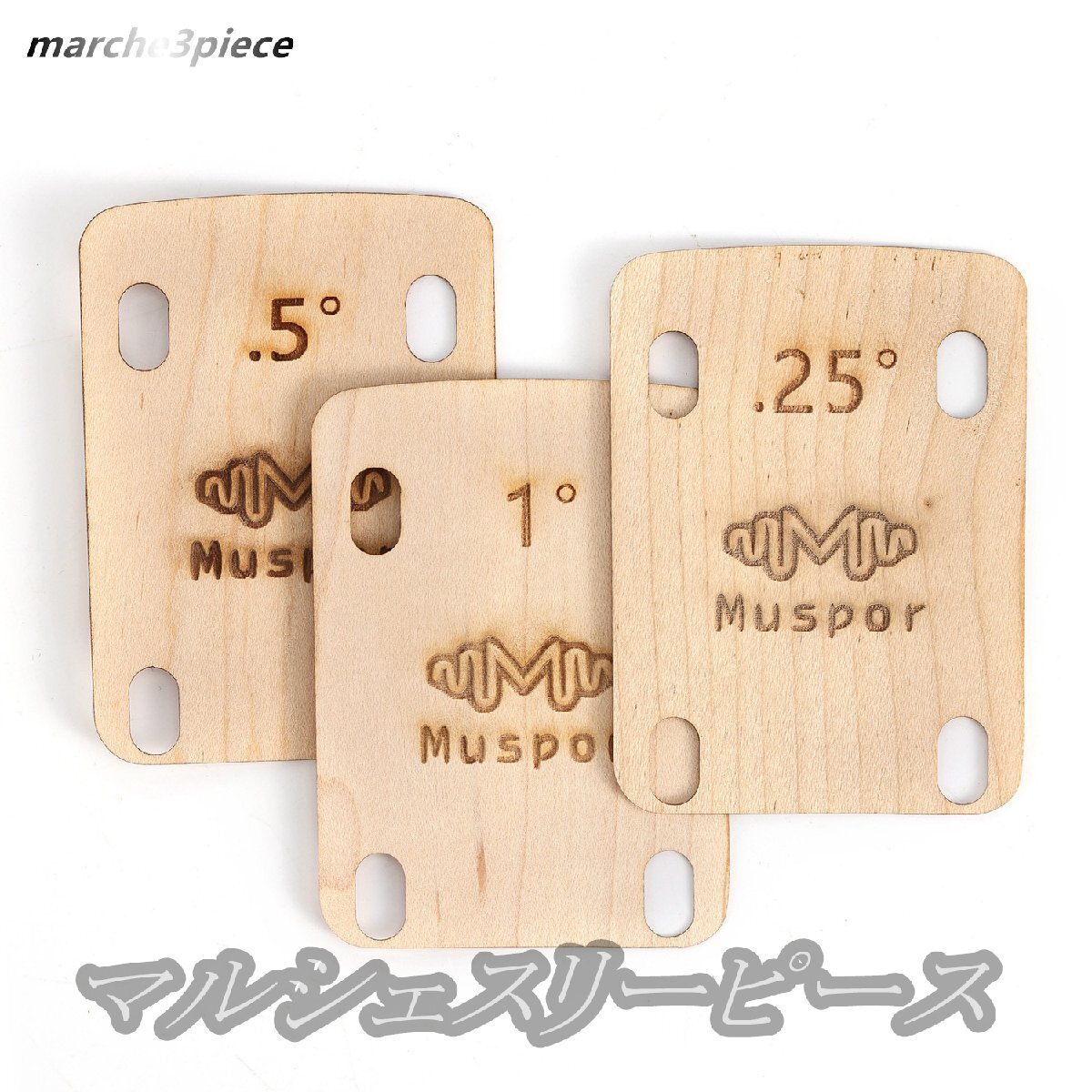 【Muspor】3枚組エレキギターネックシム メイプル材製 ネック角度調整用シム 0.25° / 0.5° / 1° セット