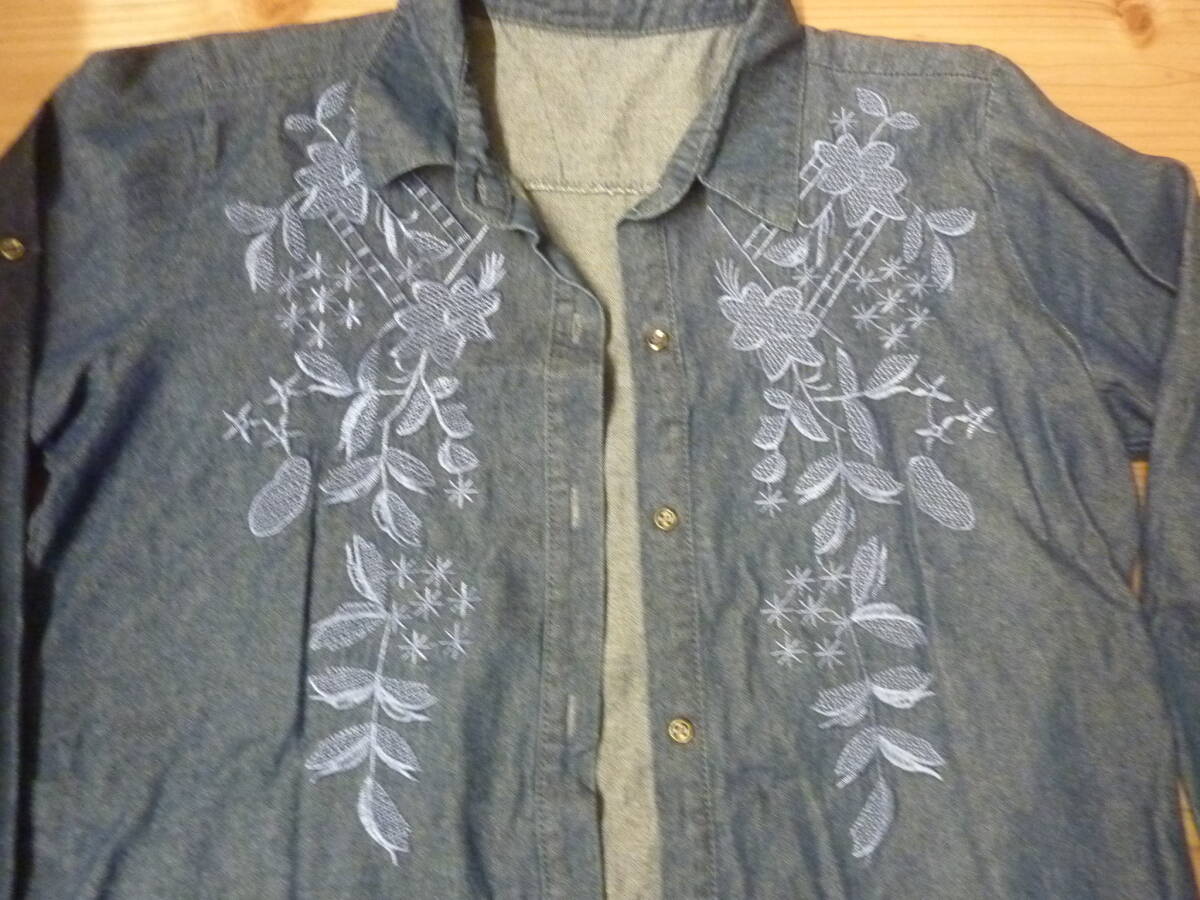 デニム素材に美しい刺繍が施された長袖シャツです。 袖は、まくってとけるためのボタンが付いています。 総丈…約80㎝ 少し長めです。 - 色: デニムブルー - デザイン: 刺繍入り - 袖の長さ: 長袖 - 素材: デニム - 襟のデザイン: シャツカラー - ボタンの数: 前面ボタン留め ご検討、よろしくお願いします。