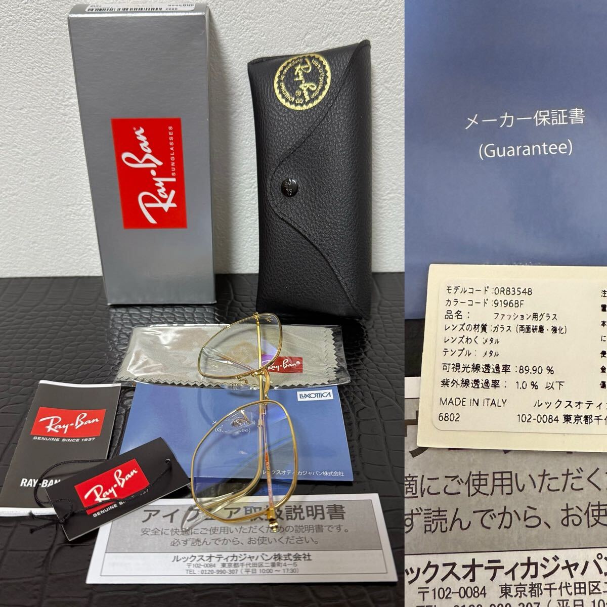 国内正規品の本物証明として、写真の通りルックスオティカジャパンのギャランティが付属します。