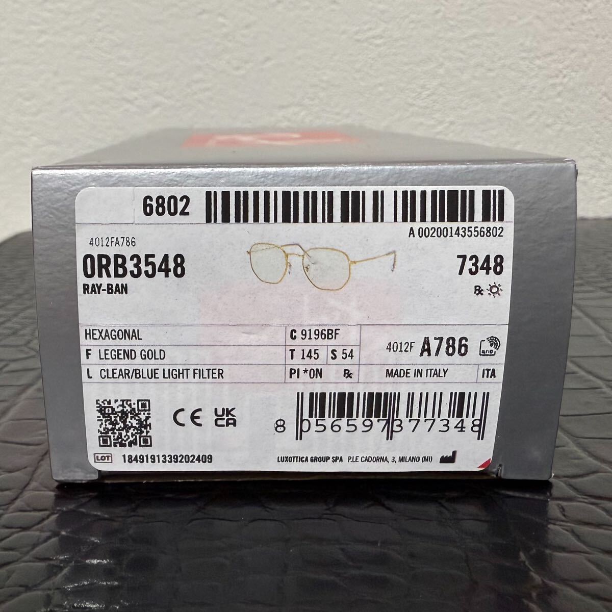 レイバン rayban rb3548N サングラス 伊達メガネ ゴールドフレーム ブルーライトフィルターレンズ ウェリントン サイズ54