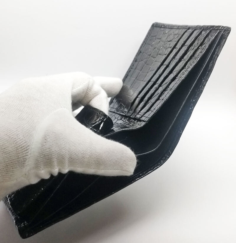 クロコダイル本皮製、贅沢に内側までクロコダイル皮を使用した無双つくり。