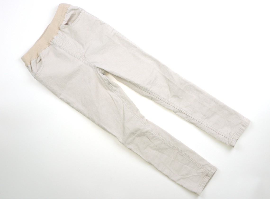 サイズ調整ゴムが付いています。コーデュロイ調生地。伸縮性のある生地です。洗いざらし感がありますが、まだまだお使いいただけそうです。