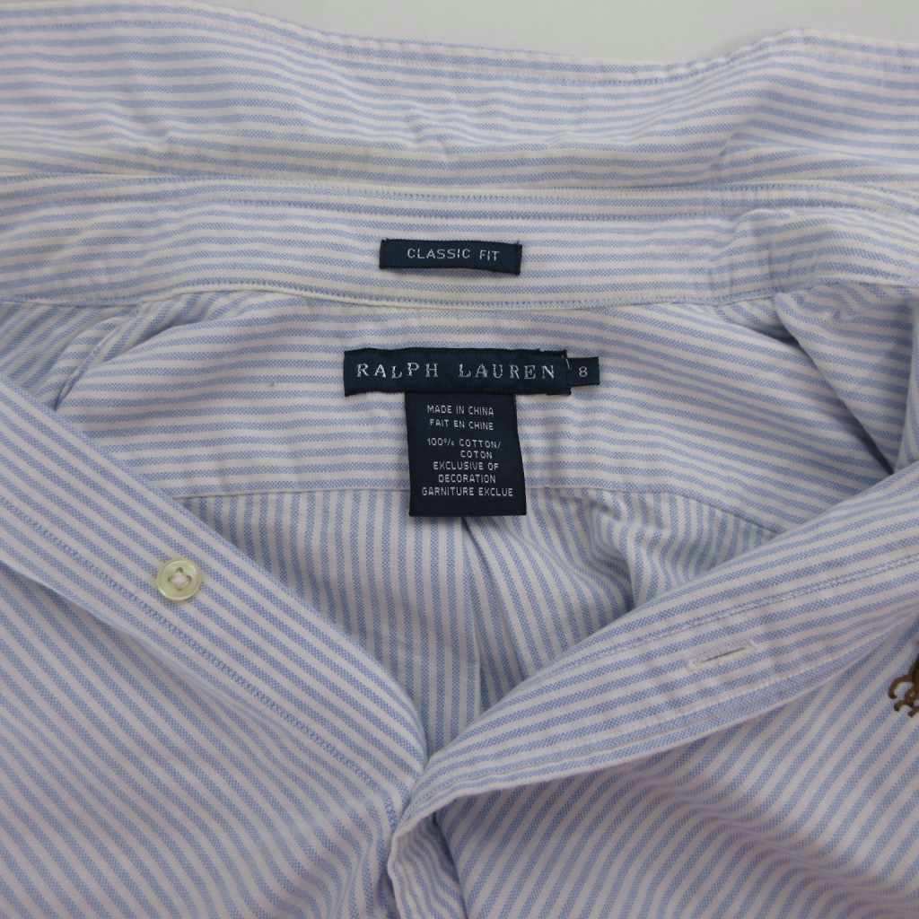 ラルフローレン RALPH LAUREN CLASSIC FIT オックスフォードシャツ ボタンダウン BD ストライプ 長袖 8 水色 ライトブルー /UO