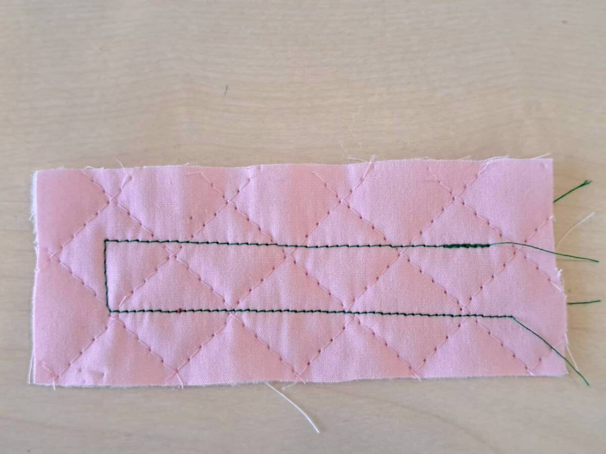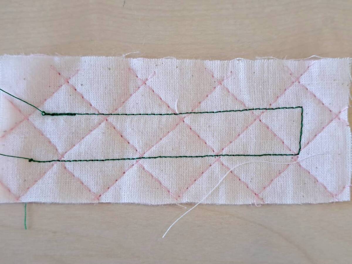 縫い目は写真9・10枚目(表・裏)を参考にして下さい。試し縫いをした生地をセットした状態で発送致します。