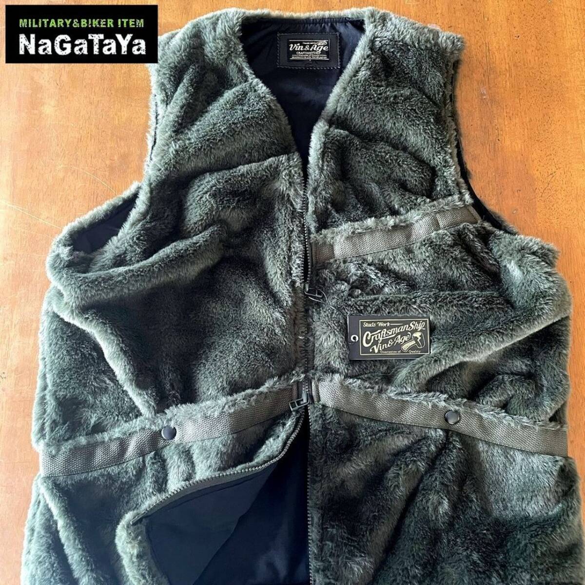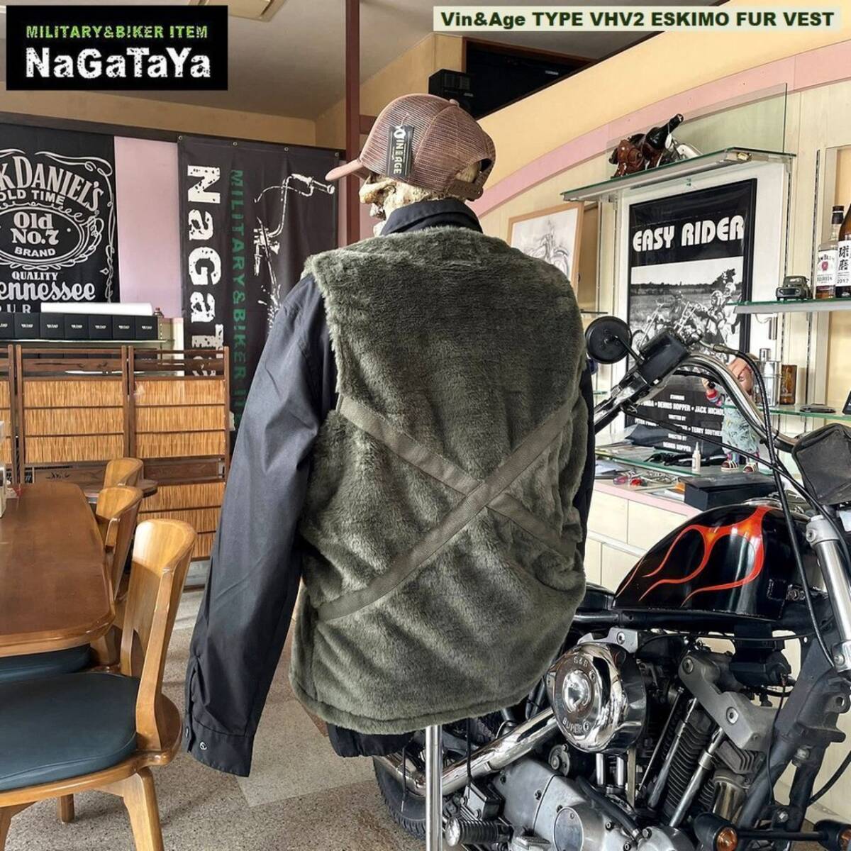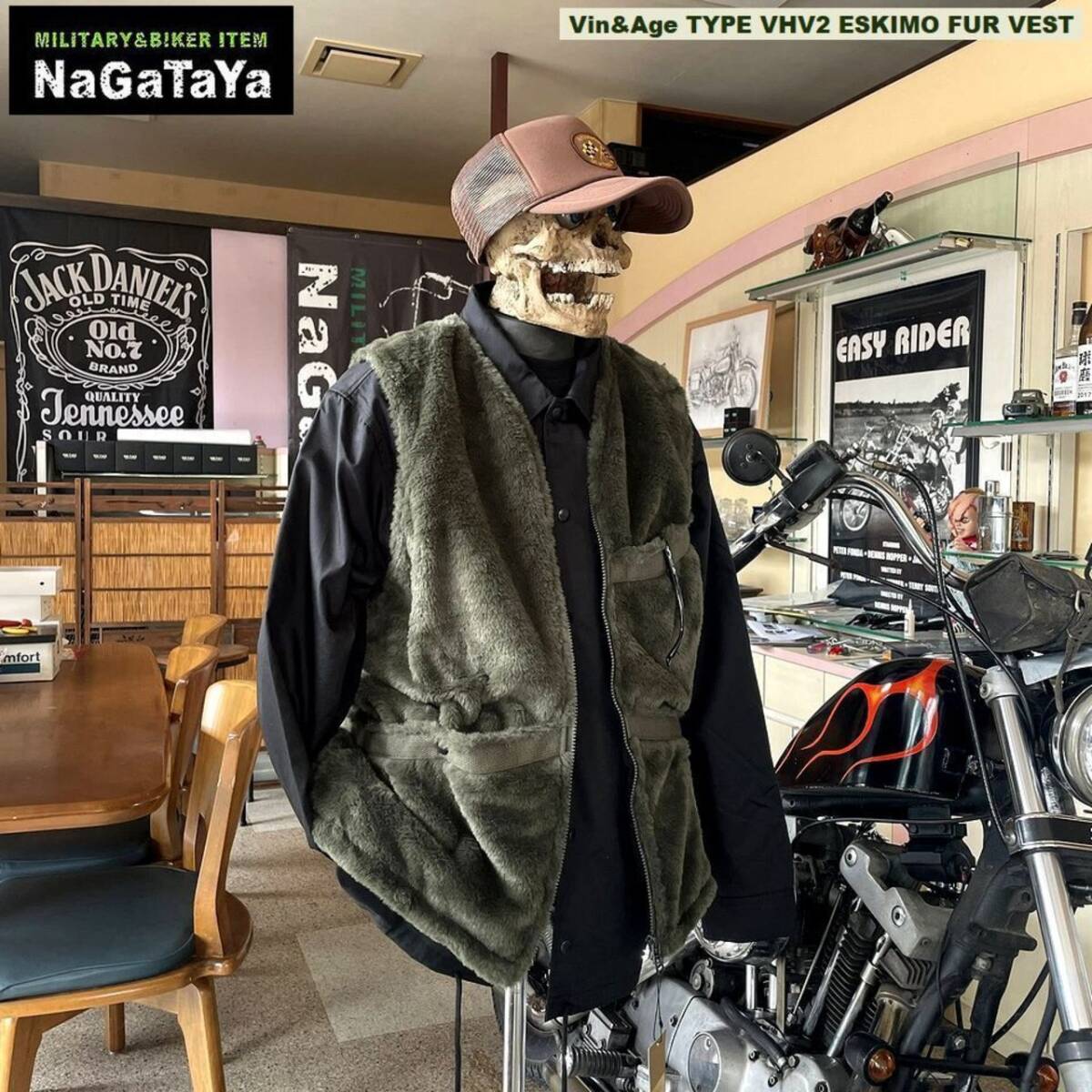 Vin&Age ビンアンドエッジ TYPE VHV2 ESKIMO FUR VEST エスキモー ファー アウターベスト カーキグリーン Lサイズ BIKER仕様