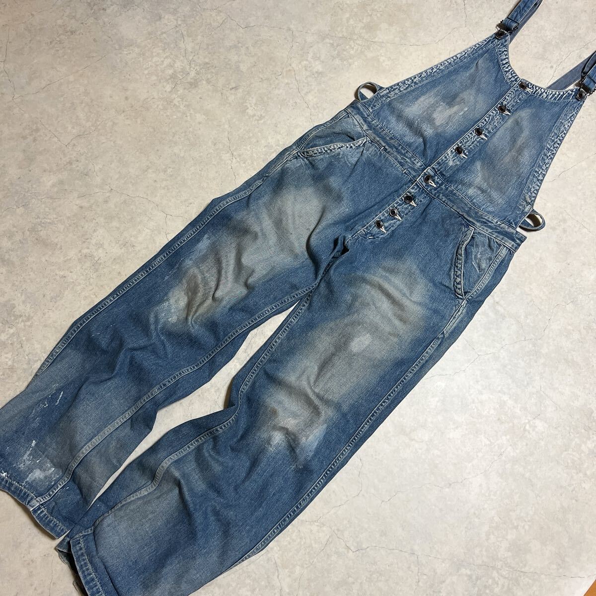ジョンブル ヴィンテージ加工 ペンキ 汚れ フェード デニムオーバーオール つなぎ オールインワン