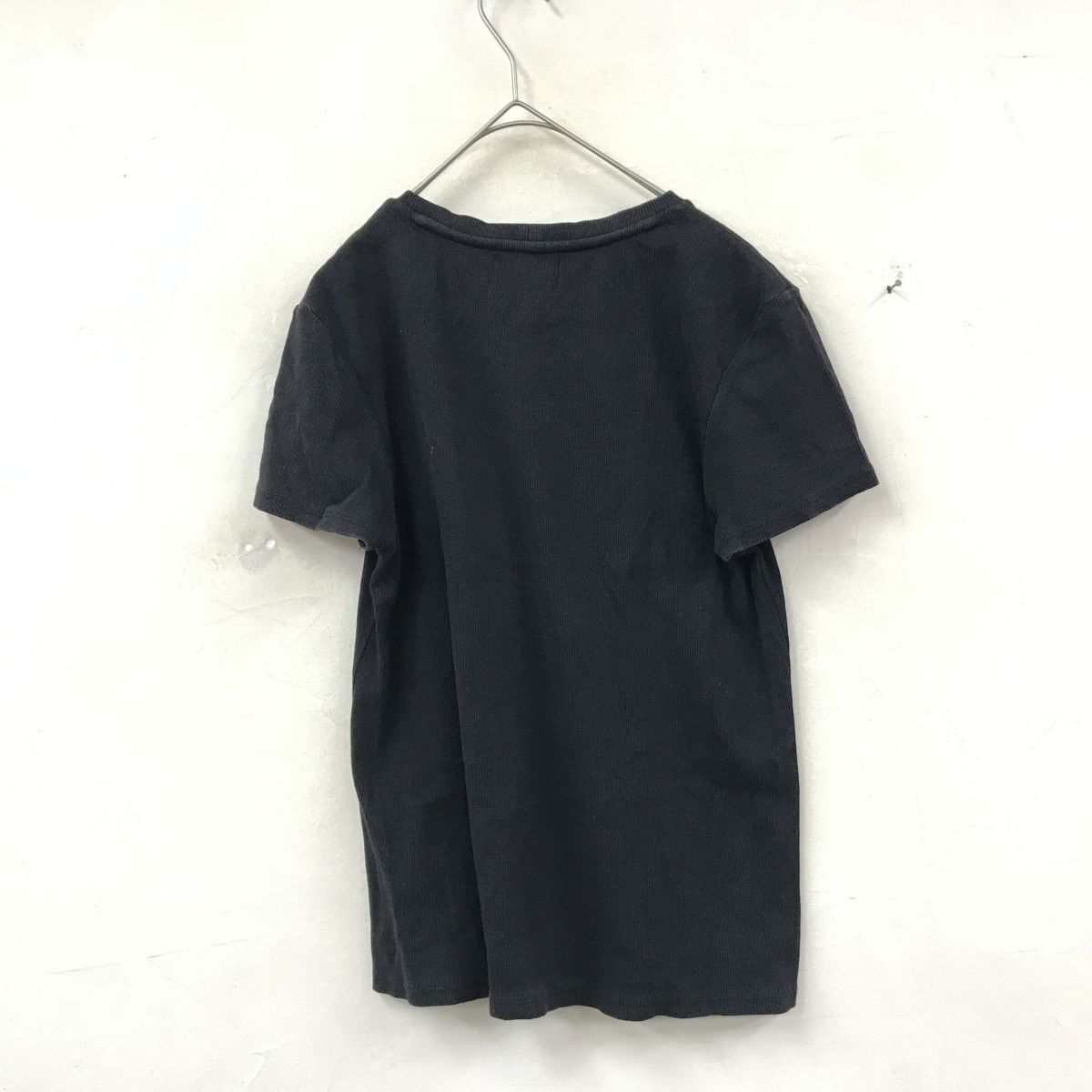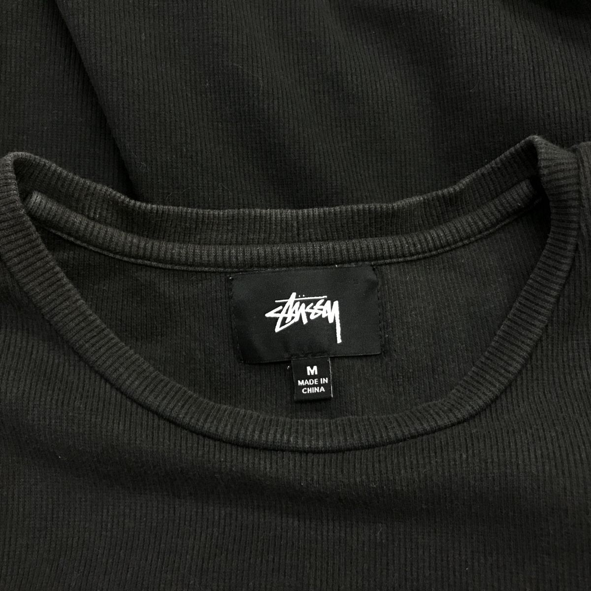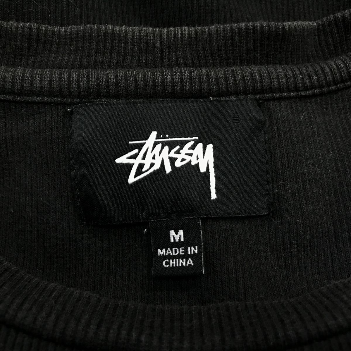 2K1833-D◆ stussy ステューシー 半袖Tシャツ カットソー リブニット ロゴ刺繍 ◆ sizeM ブラック コットン