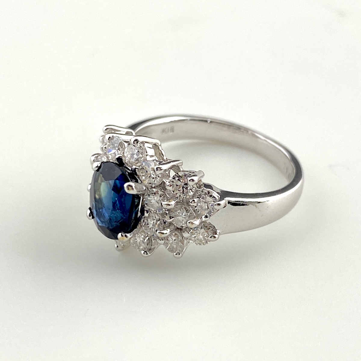 サファイア デザインリング 指輪 メレダイヤ リング 9号 K18 サファイア ダイヤモンド レディース 【中古】 |