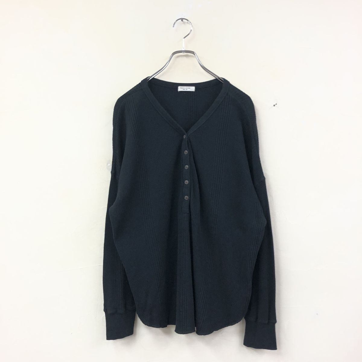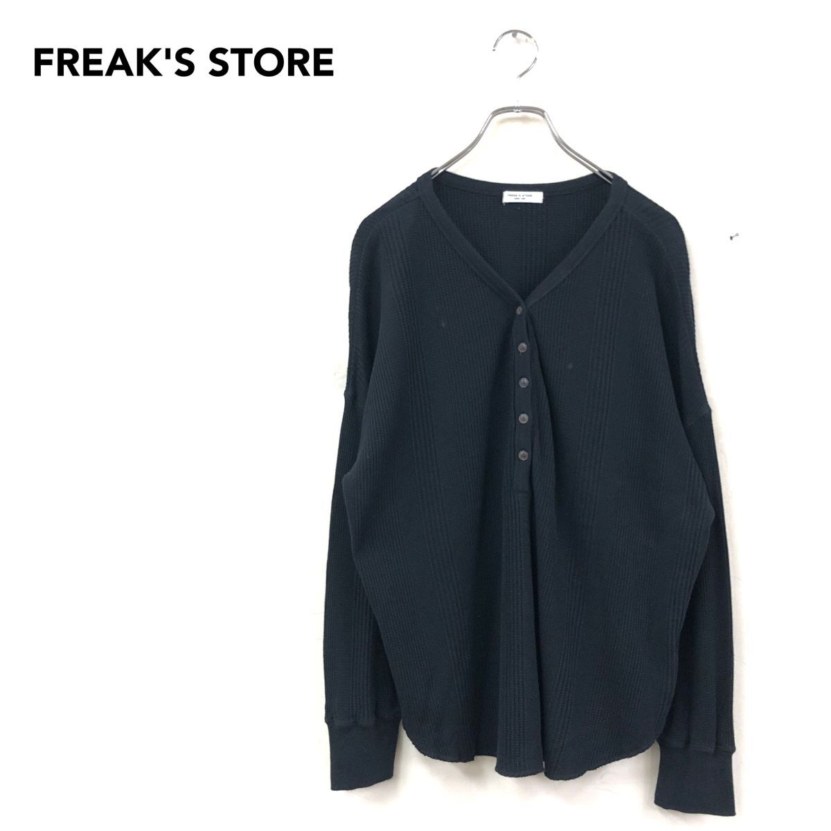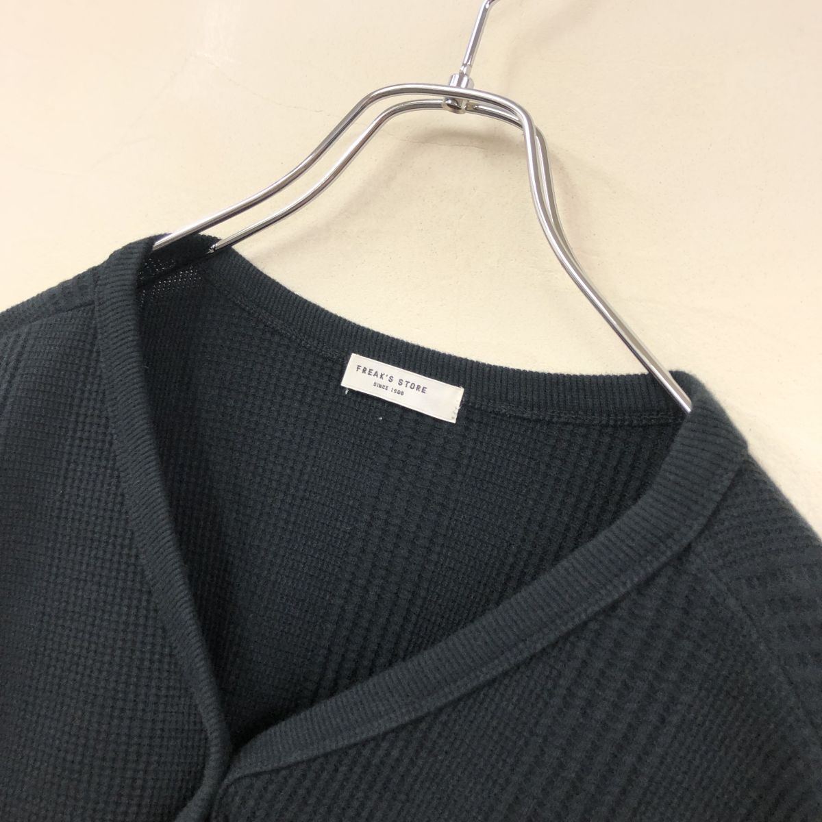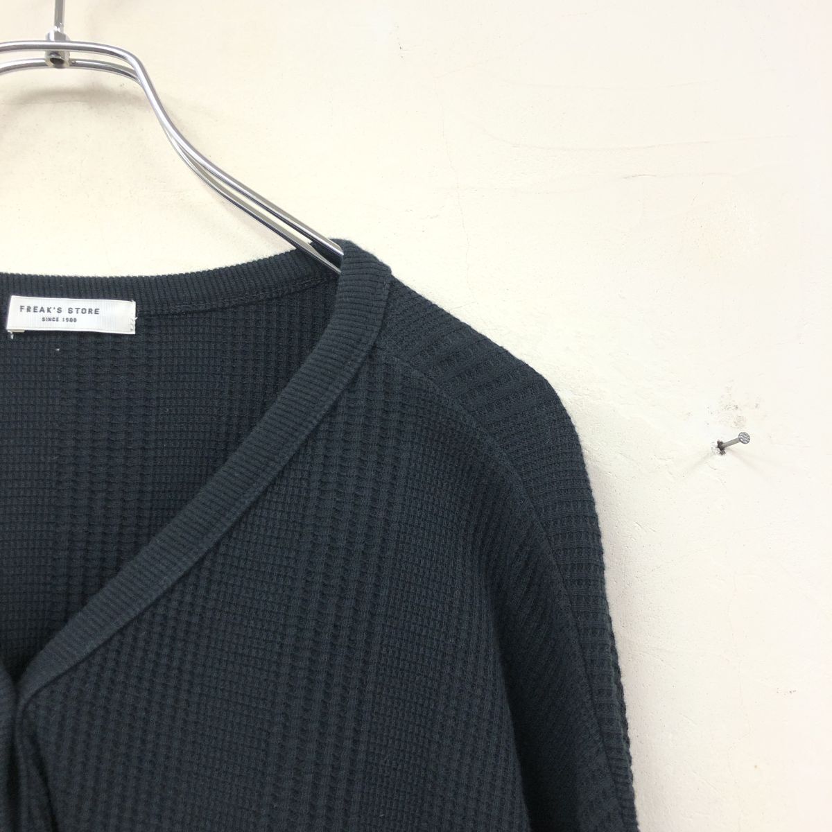 2K1989-Q-N◆FREAK'S STORE フリークスストア VネックTシャツ ワッフル 長袖 カットソー トップス メンズ◆size F 黒 ブラック 綿100