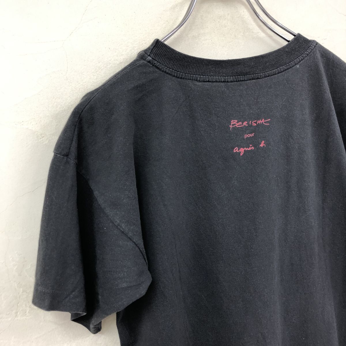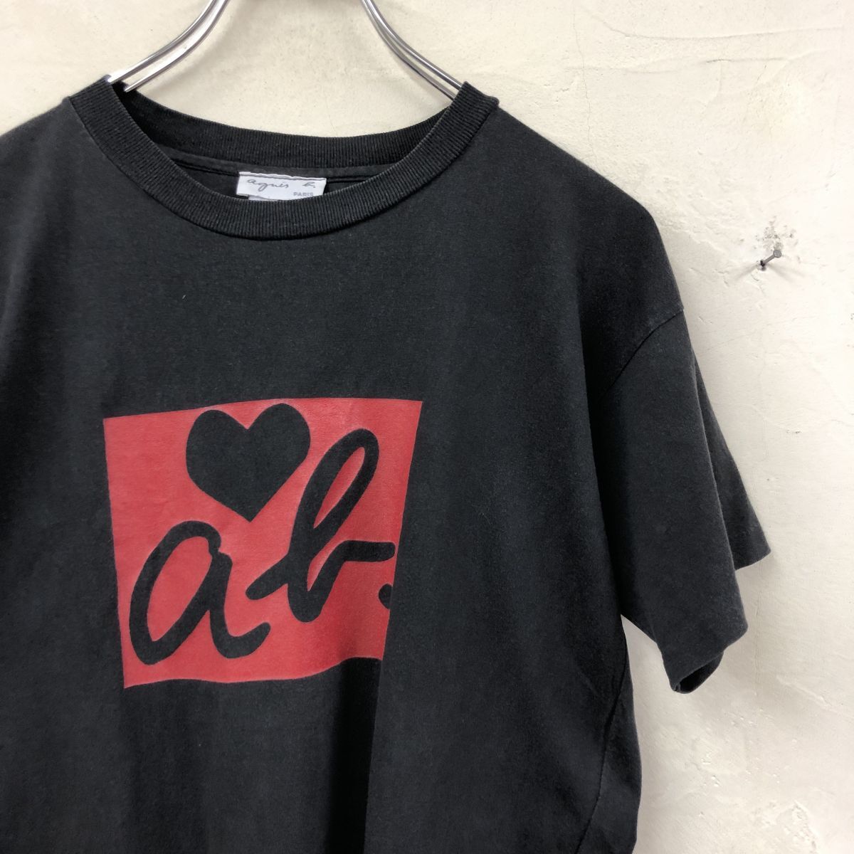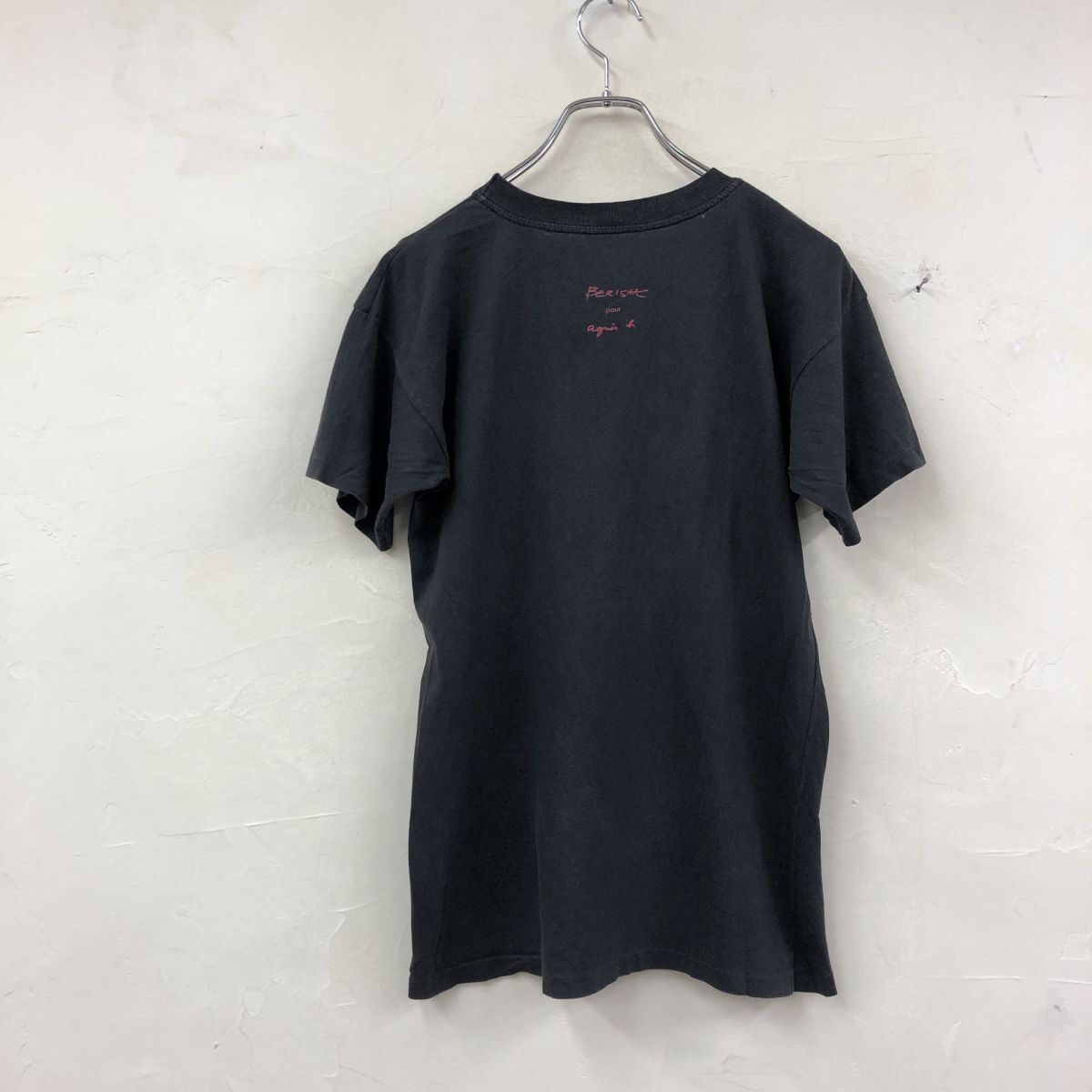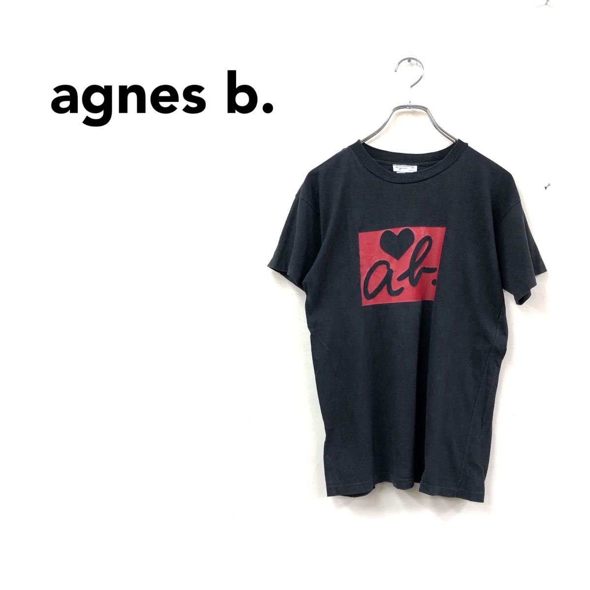 2K1575-G◆ agnes b. アニエスベー フランス製 ビッグロゴプリントTシャツ y2k 半袖 リブクルーネック 薄手 ◆ sizeM 黒 赤 綿