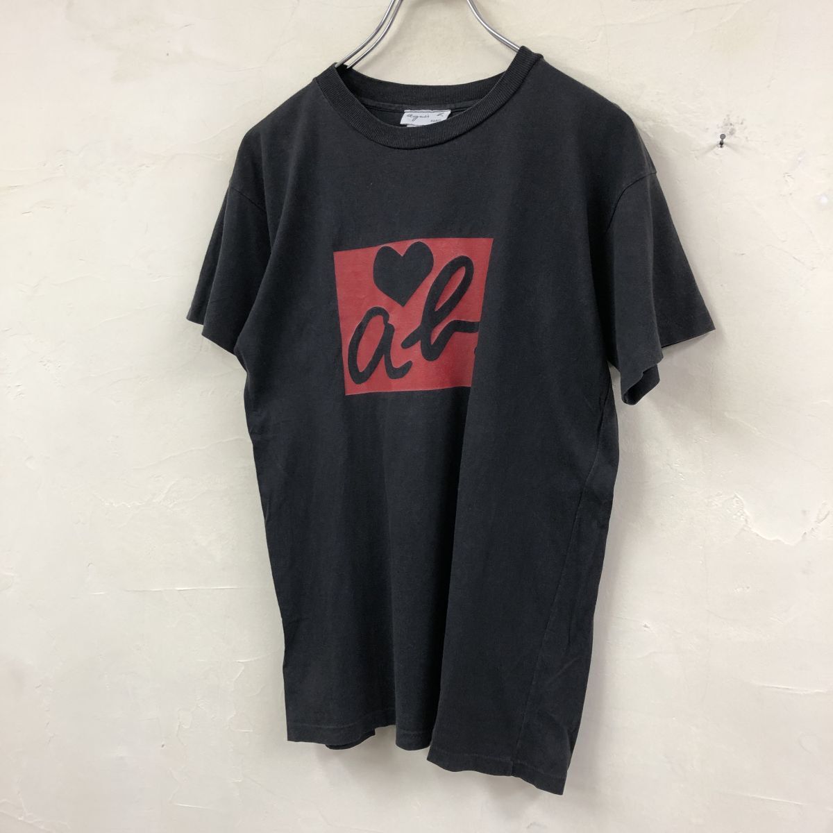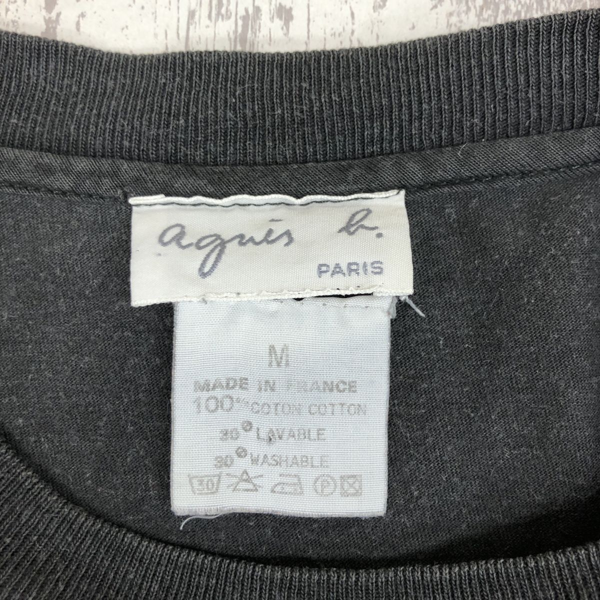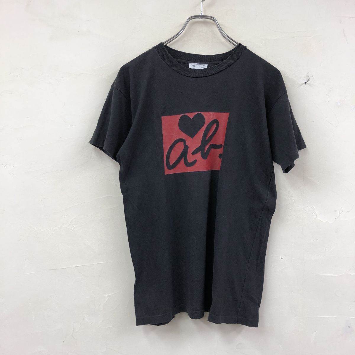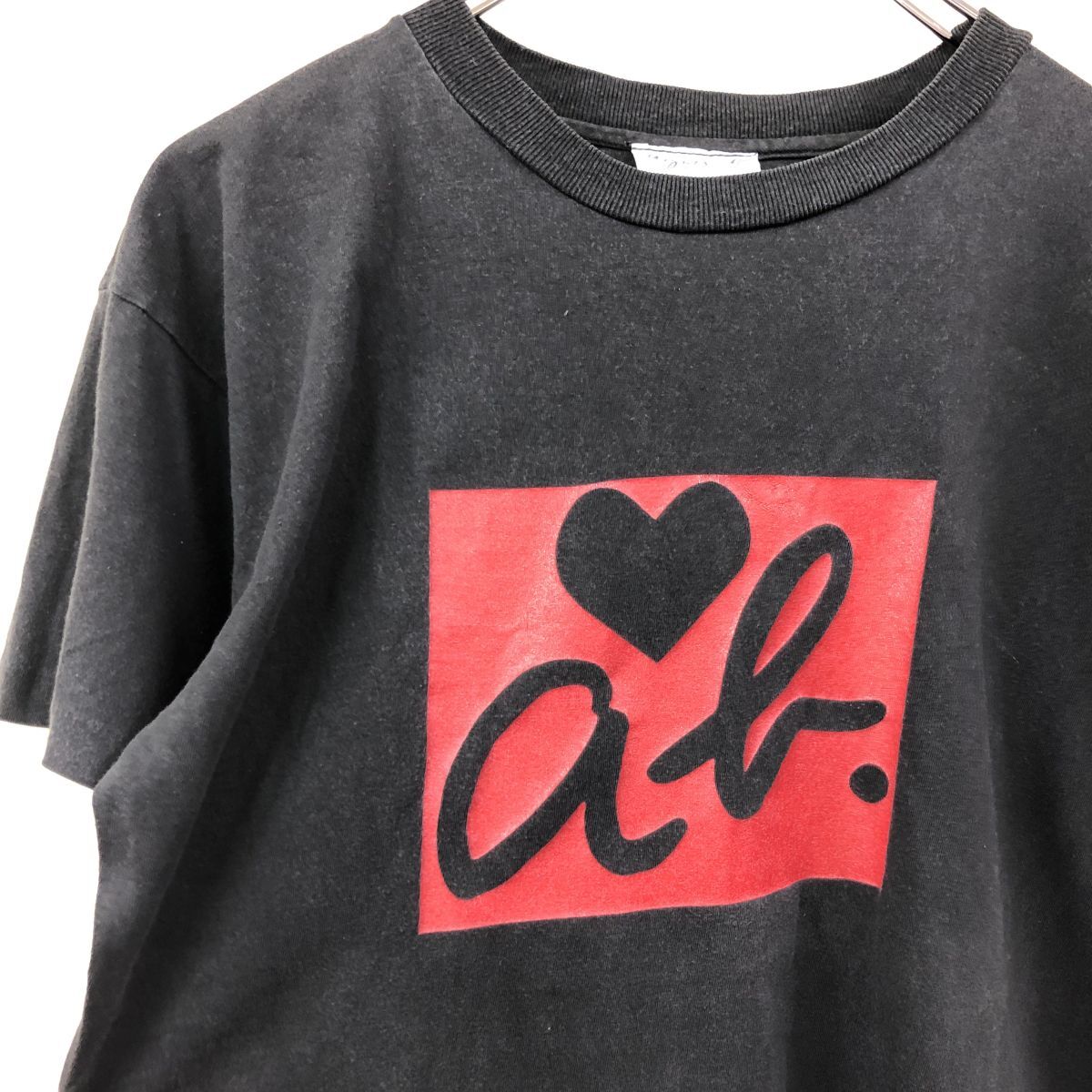 2K1575-G◆ agnes b. アニエスベー フランス製 ビッグロゴプリントTシャツ y2k 半袖 リブクルーネック 薄手 ◆ sizeM 黒 赤 綿