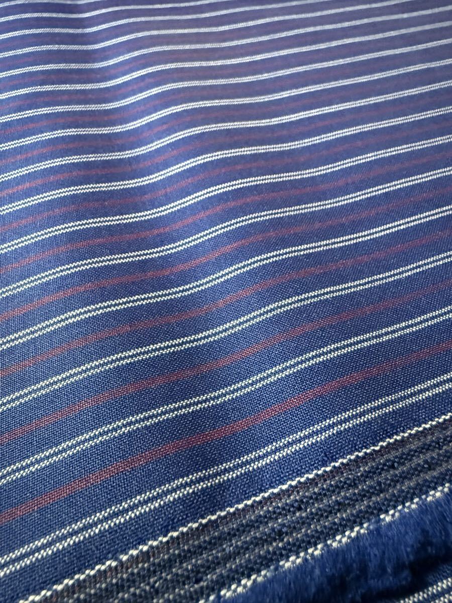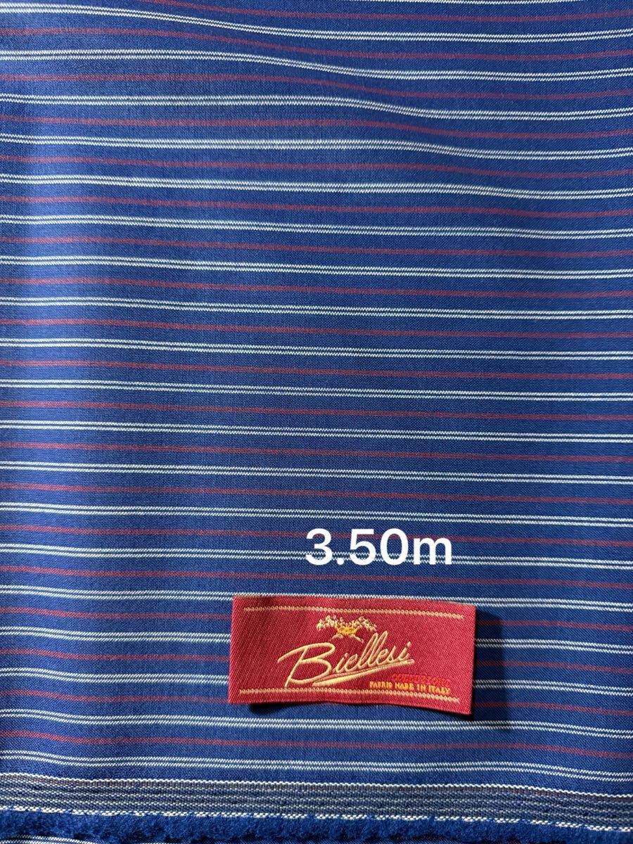 イタリア製ビエレッシ社のブルーマルチストライプ生地です。
