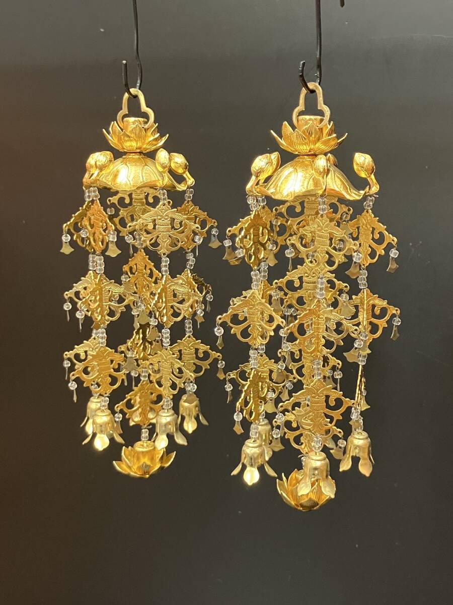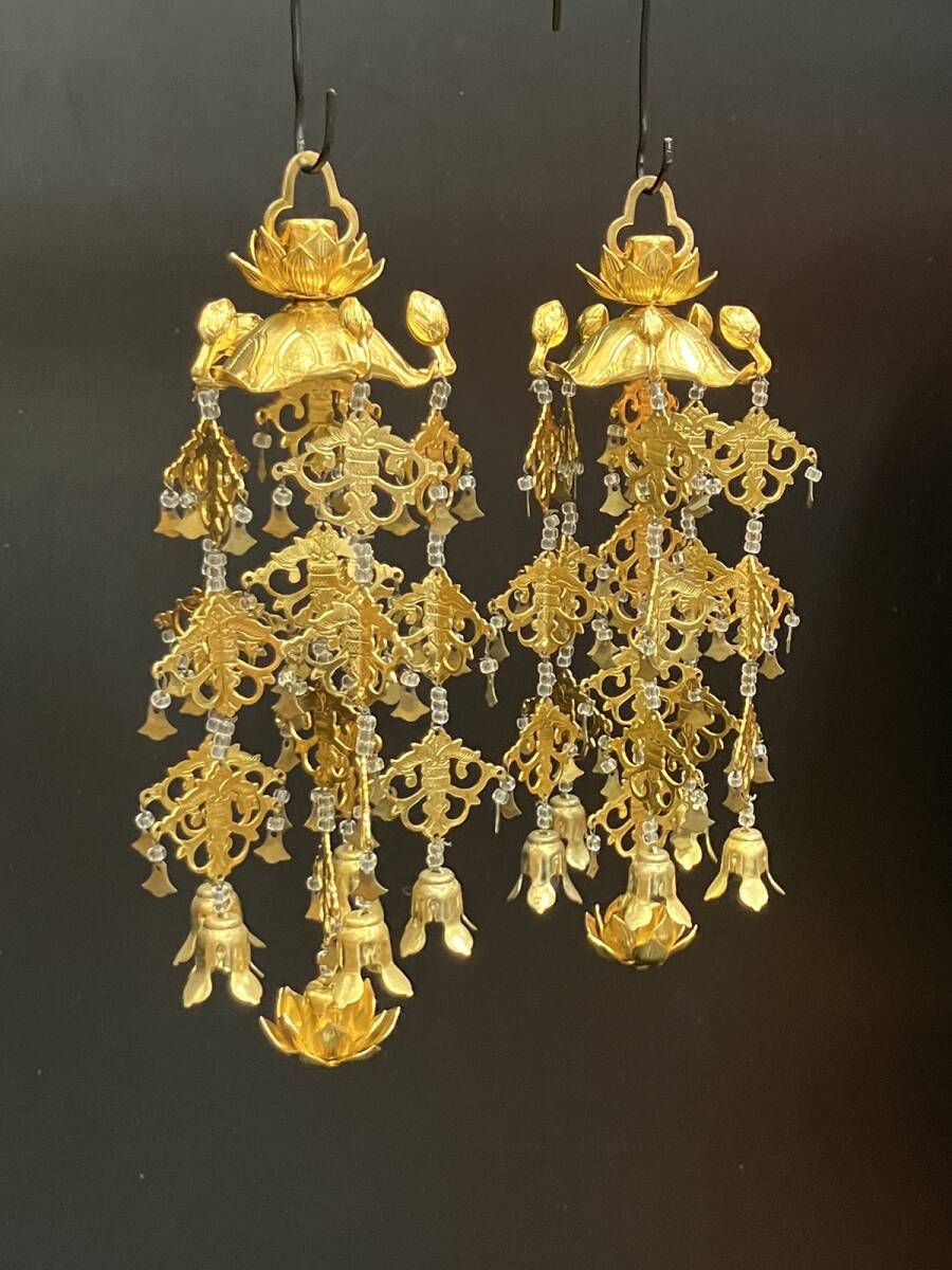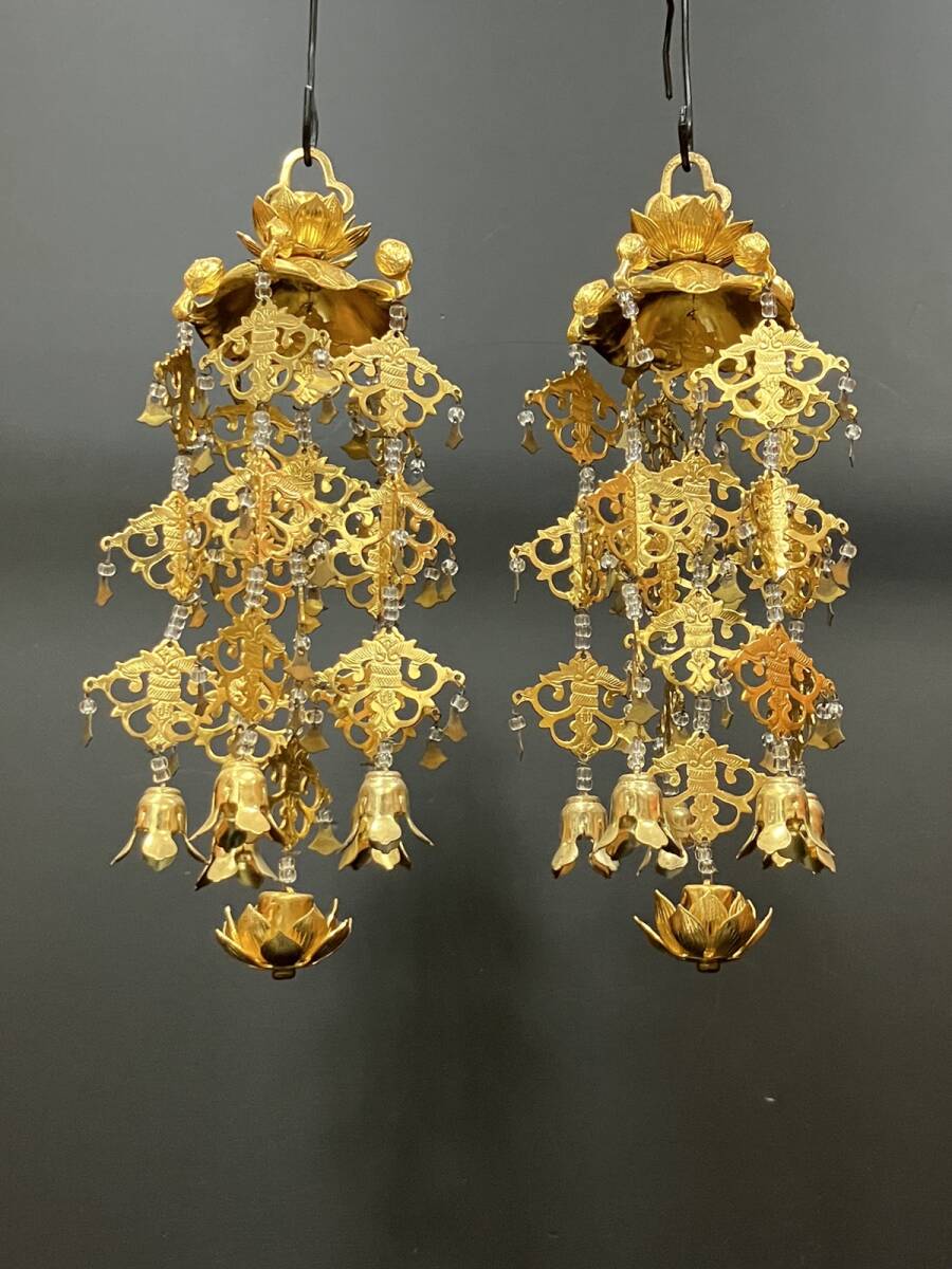 ◆【寺院仏具・仏教美術】アルミ製・蓮笠ようらく・本金メッキ(3段6下がり)115◆ | |