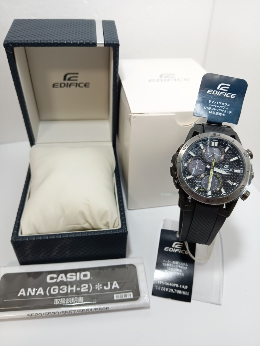 1円【未使用/タグ付】EDIFICE エディフィス 腕時計 EFS-S640PB-1AJF SOLAR POWERD ソスペンシオーネ 付属あり メンズ