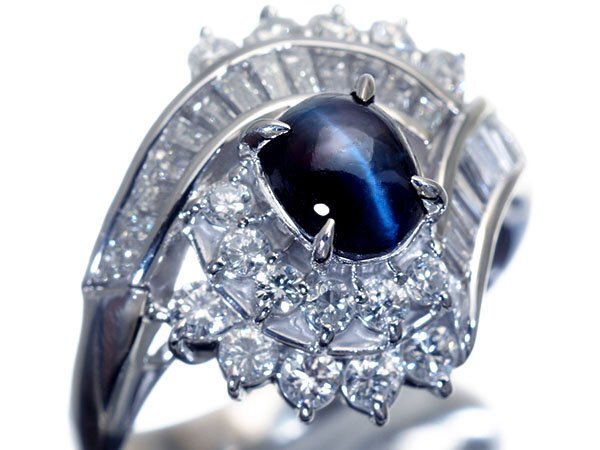 超希少宝石の超大粒極上天然アレキサンドライトキャッツアイ1.30ct&極上ダイヤモンド総計1.081ctを素敵に宝飾した、超高級Pt900リングを1円から特別大放出致します!
