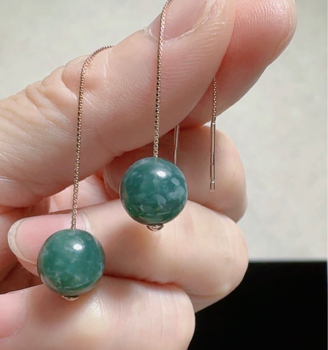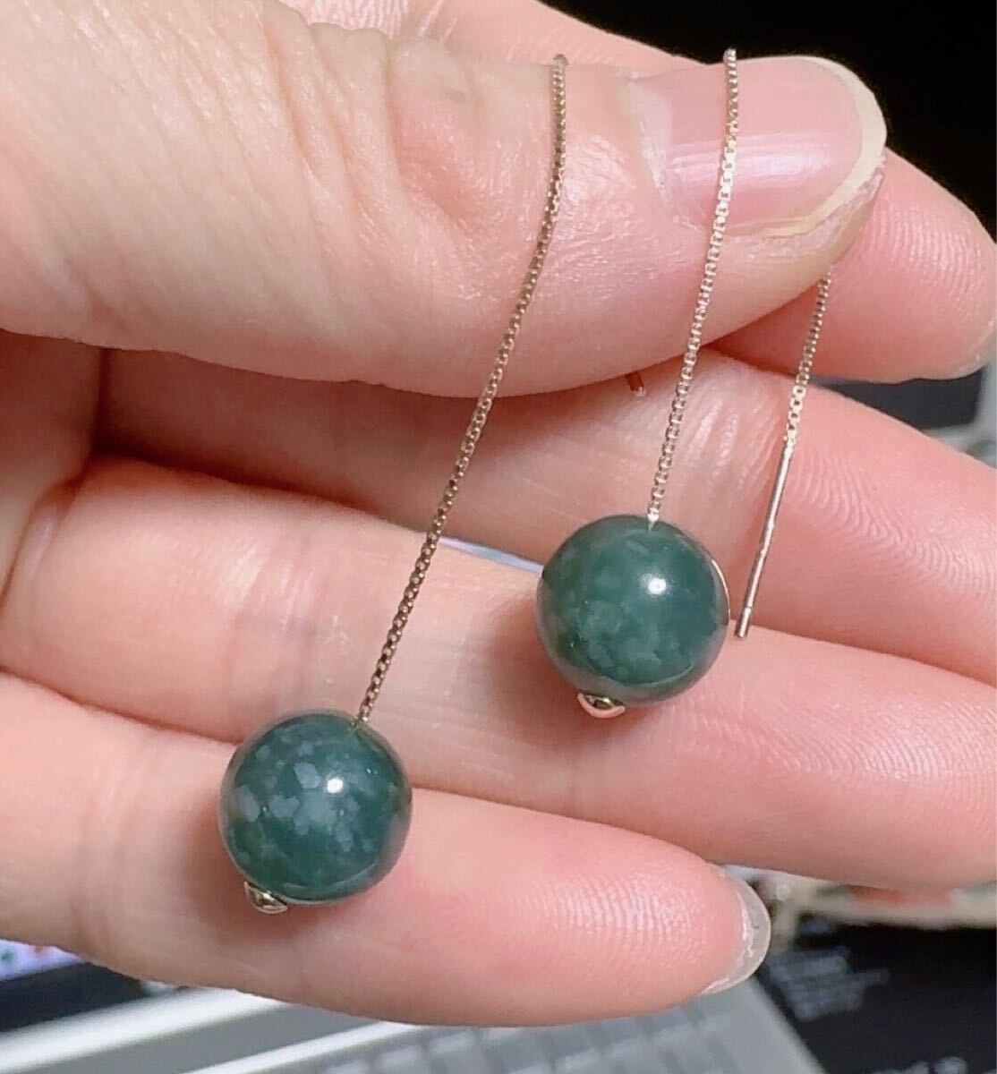 天然本翡翠《本物保証》 藍水ひすい 揺れるピアス SV925 刻印 一点物 希少 縁起物 お守り 美しい~~ パワーストーン