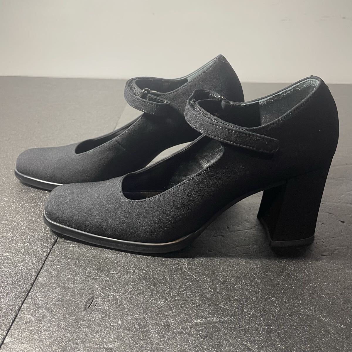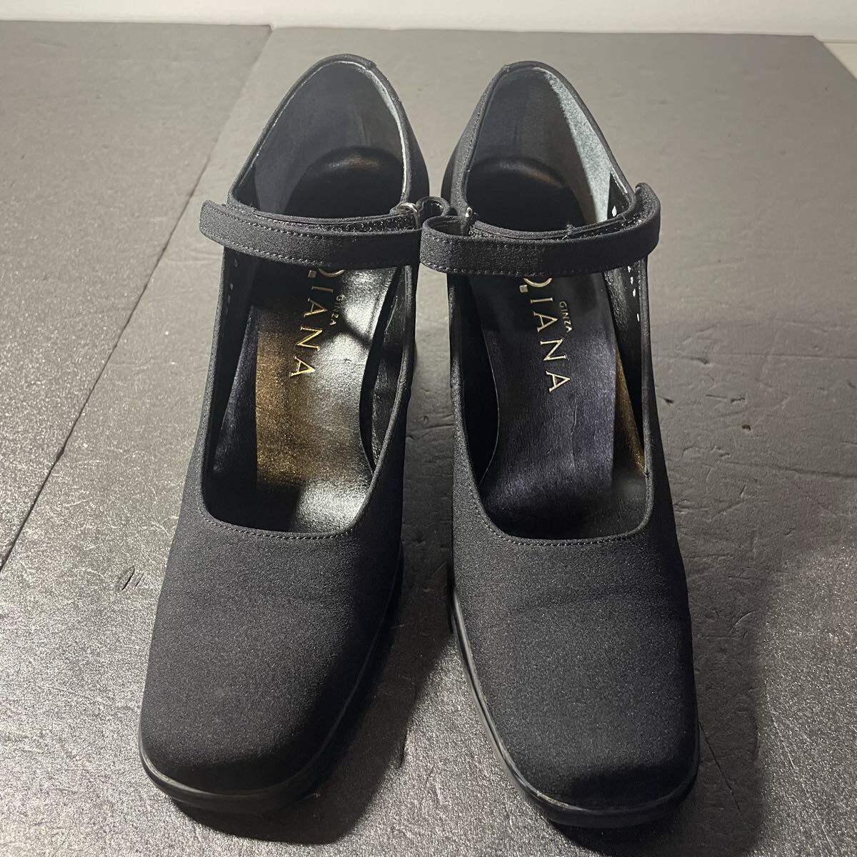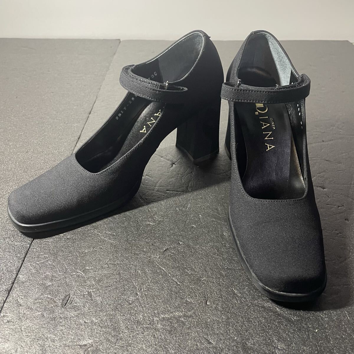 DIANA スクエアトゥストラップ ヒール パンプス ブラック 22cm