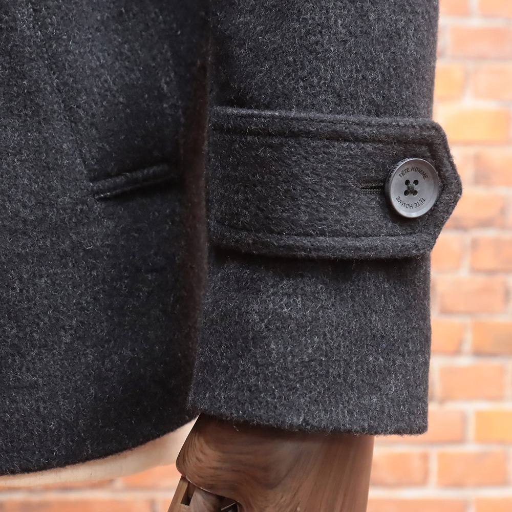 24AW/TETE HOMME/LLサイズ/ショートコート 1024693011 カシミヤブレンド バーズアイ 上品 テットオム 新品/黒/ブラック/ma480a/