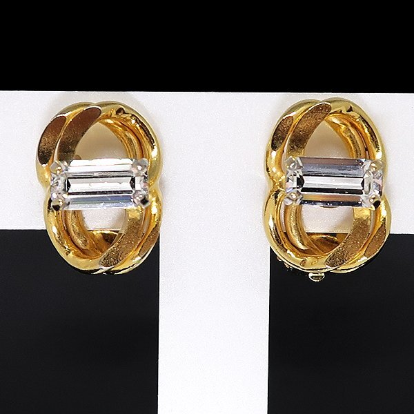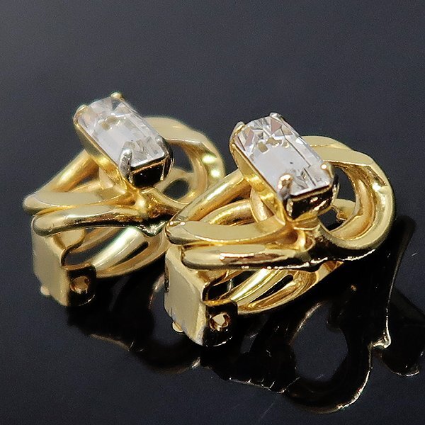 DKG★送料無料★ ヴィンテージ ラインストーン 透明 クリア ゴールド カラー アンティーク イヤリング ③
