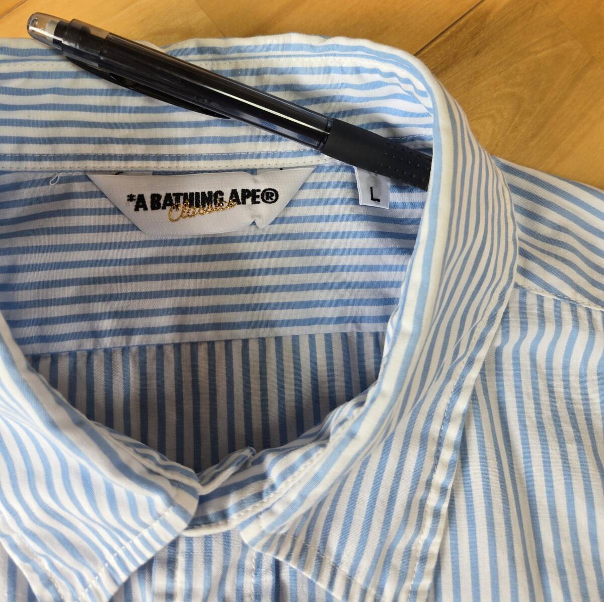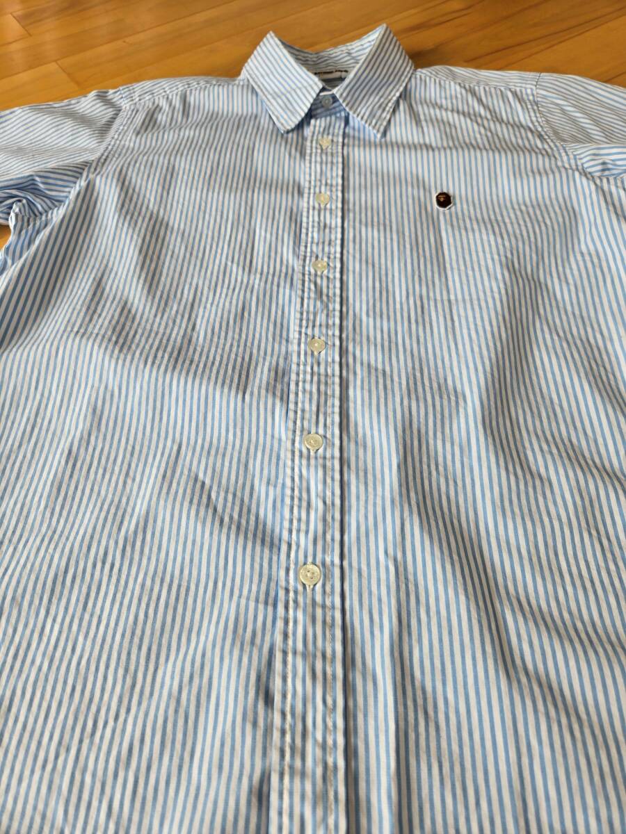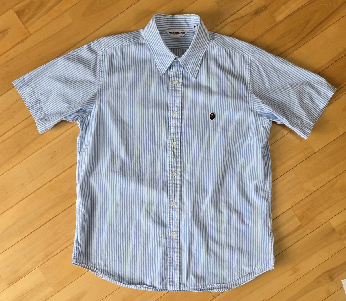 ★極美中古 A BATHING APE エイプ ストライプ 半袖シャツ L
