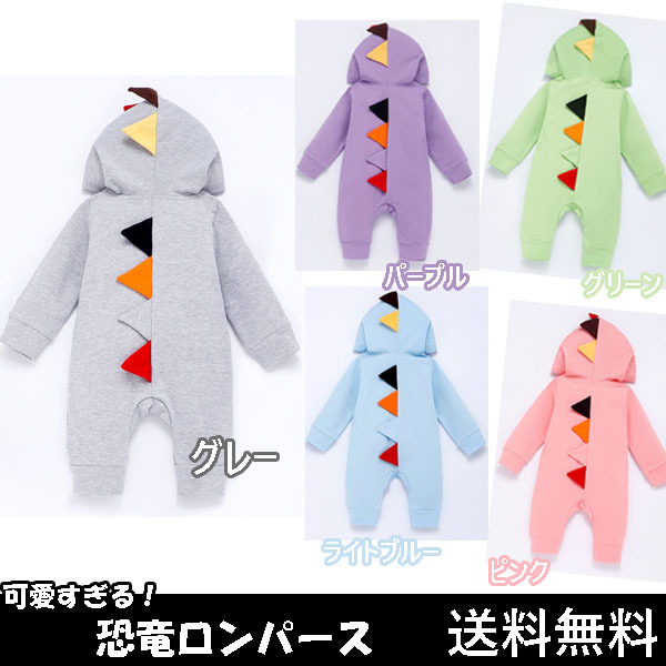 ロンパース カバーオール 恐竜 フード付 帽子 怪獣 出産祝い プレゼント 長袖 子供服 ベビー服 ベビー キッズ 女の子 赤ちゃん 男の子
