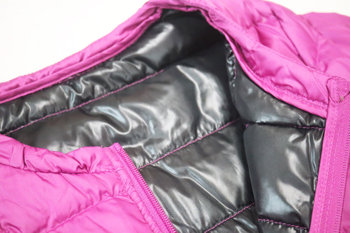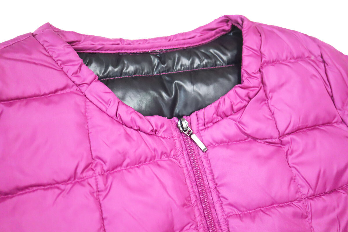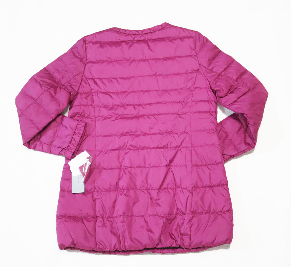 ダウンフェザーの軽いジャケット ダウンジャケット シンプルなデザイン 少し、裾がふんわりしています。 前は、ジッパー ポケットあり 軽いです。 ◆素材 :表地‥ポリエステル 中綿・・ダウン80 フェザー20 ◆表示サイズ:バスト79-87 身長154-162 ◆実寸:バスト100 裾周り106 着丈75 肩幅36 袖丈60