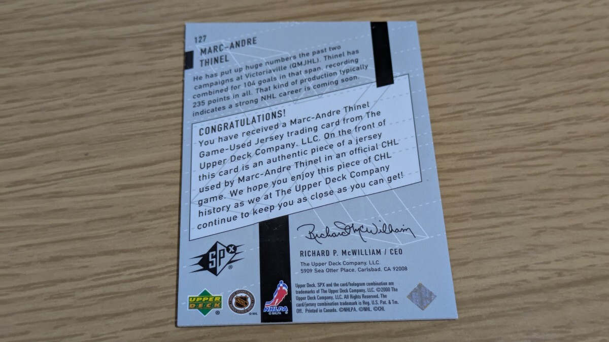 2、Marc-Andre Thinelゲーム実使用ジャージ入りカード。
