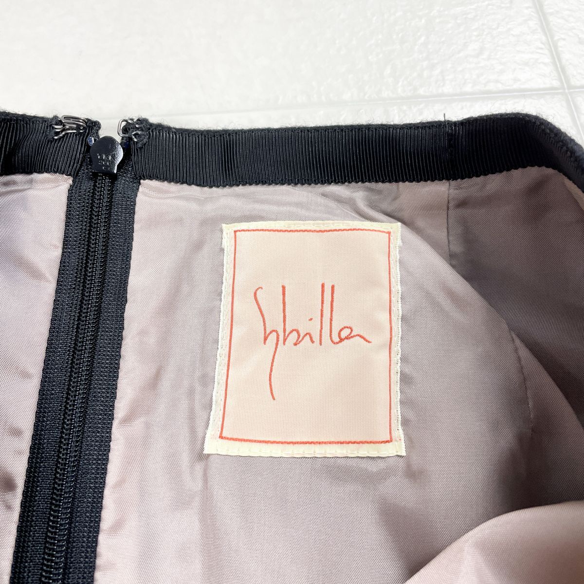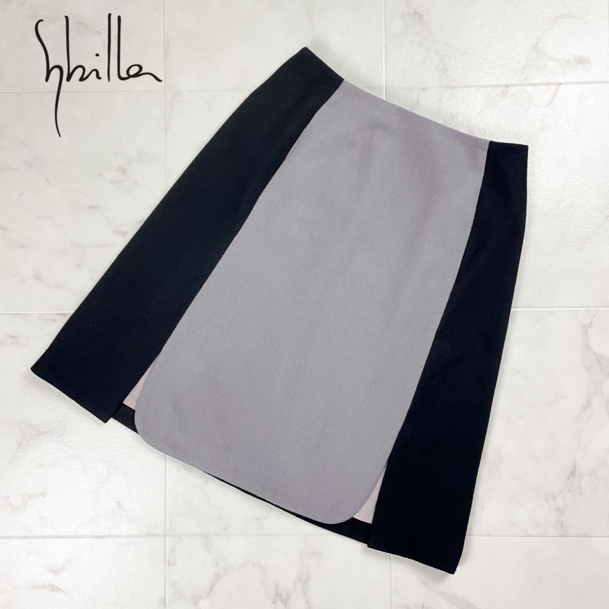 美品 Sybilla シビラ パッチワーク 台形スカート 膝丈 黒 ブラック グレー サイズL*HD253