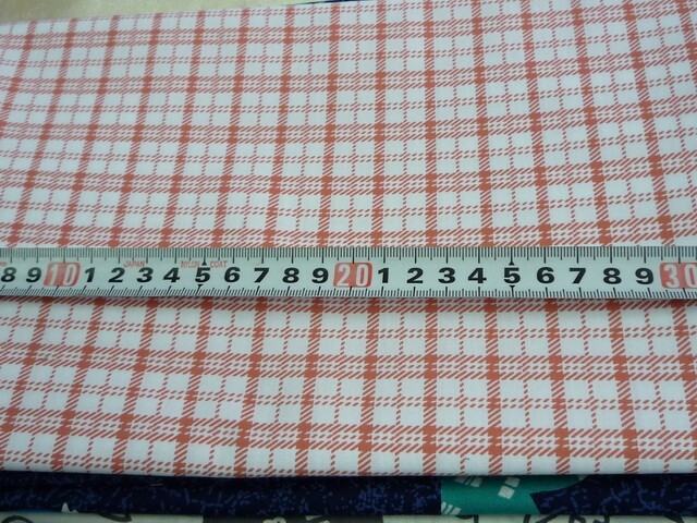 100*60★サーモンピンク・チェック柄の・ハギレ・生地・布★0536-37