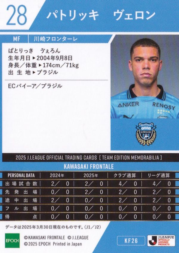 EPOCH 2025 TE 川崎フロンターレ KF26 パトリッキヴェロン