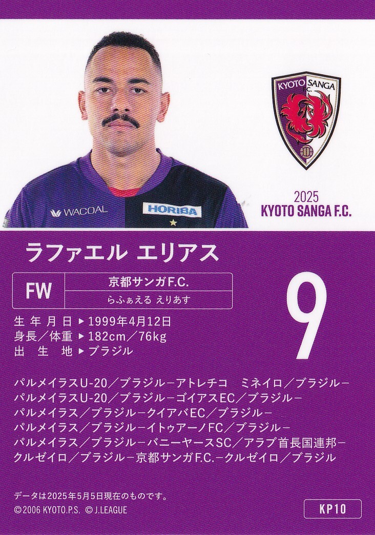 京都サンガFC 2025 オフィシャル KP10 ラファエルエリアス