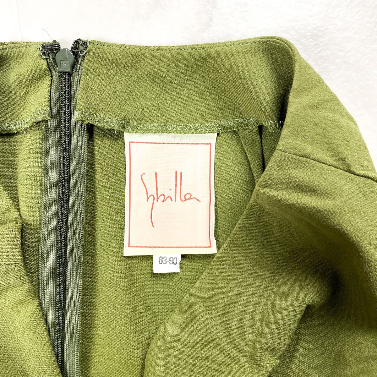美品 Sybilla シビラ コットンレーヨンタイトスカート 無地 バックジップ 膝丈 緑 グリーン サイズ63-90*HD333