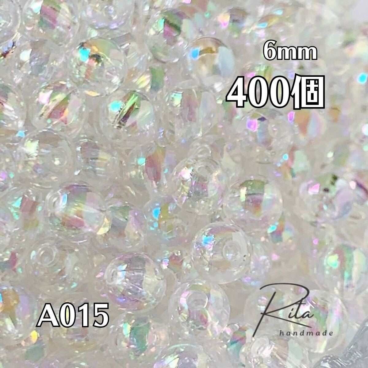 【400個】クリア アクリルクリアビーズ オーロラ加工 6mm 両穴 ハンドメイド アクセサリーパーツ