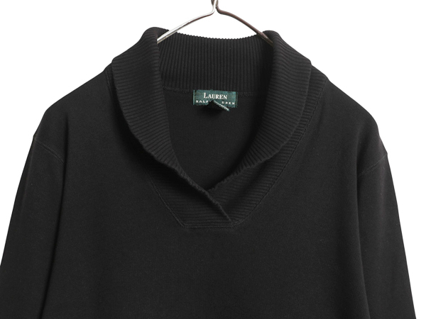 商品名 | 90s ローレン ラルフローレン ショールカラー リブ編み カットソー レディース XL オールド ストレッチ コットン セーター 大きいサイズ 黒 |